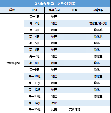 星海苏茜路高一分科情况