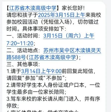 今天上午木高短信通知本周六(3月15日)参加小升初活动。