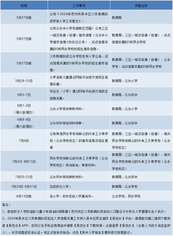 以下为苏州六区2024年入学日程相关安排,苏州2025年幼升小/小升初家长可以做参考,不会有太大变动。