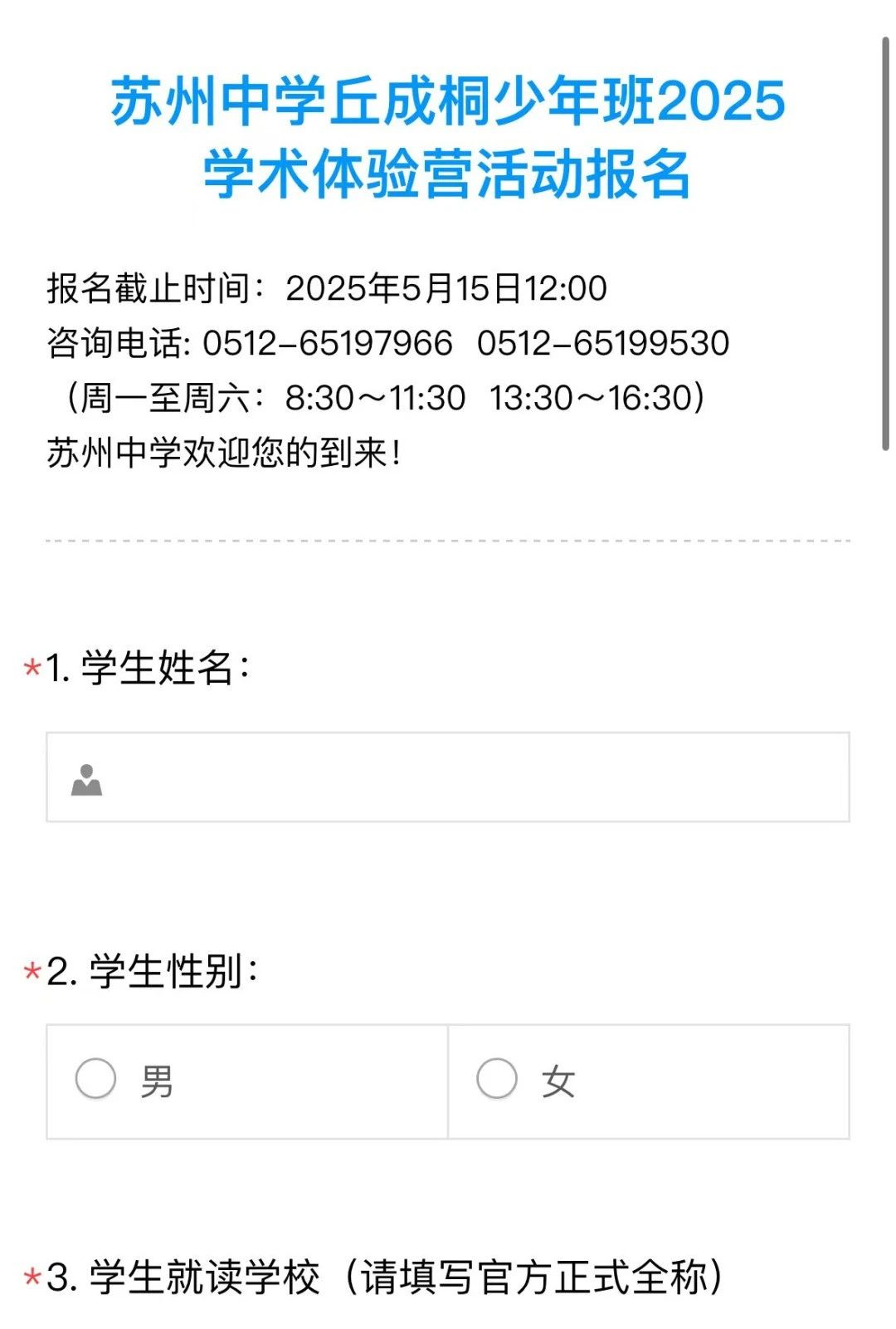 五年级到初三皆可报名!2025江苏苏州中学丘班报名开启