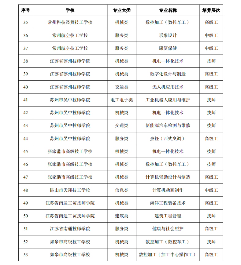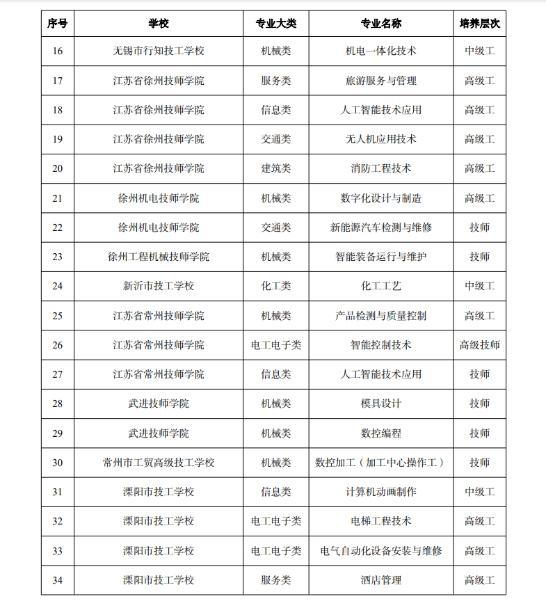 5月13日,江苏省人力资源和社会保障厅发布《关于南京技师学院等65所技工院校拟增设专业的公示》。