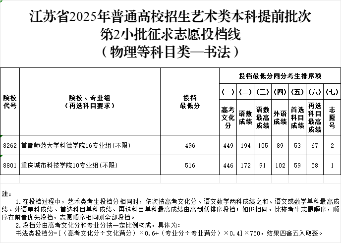 江苏省2025年普通高校招生体育类、艺术类本科提前批次征求志愿投档线