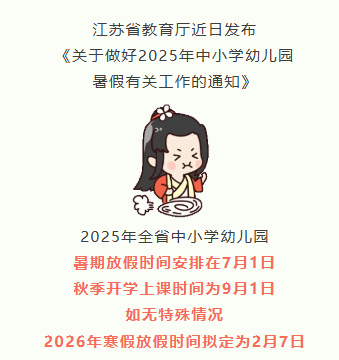 2025年苏州中小学幼儿园秋季开学上课时间为9月1日(如无特殊情况)