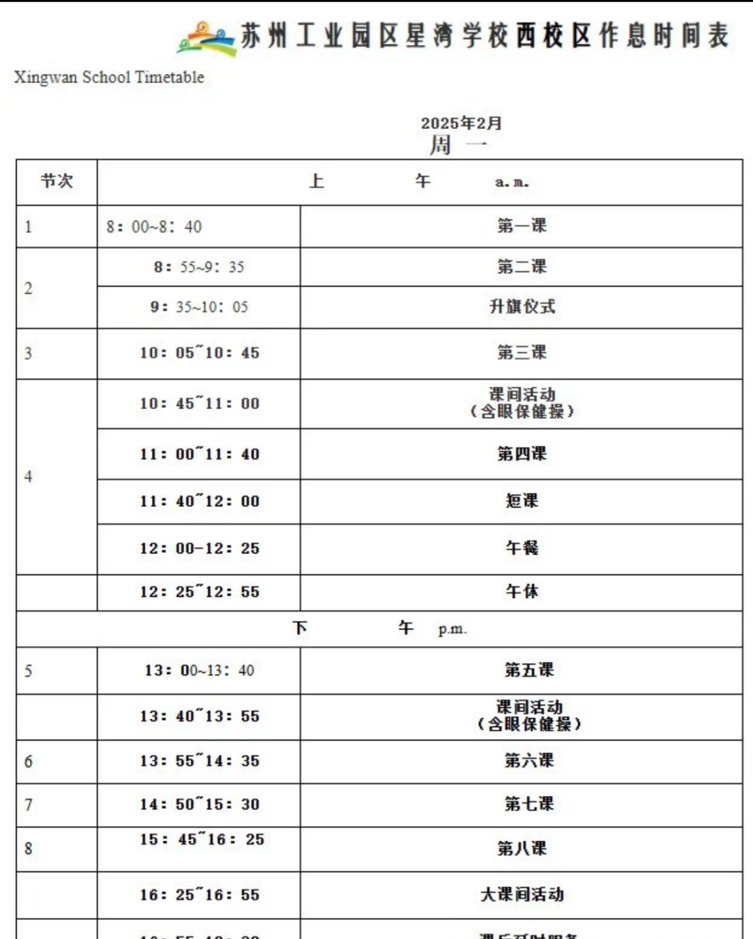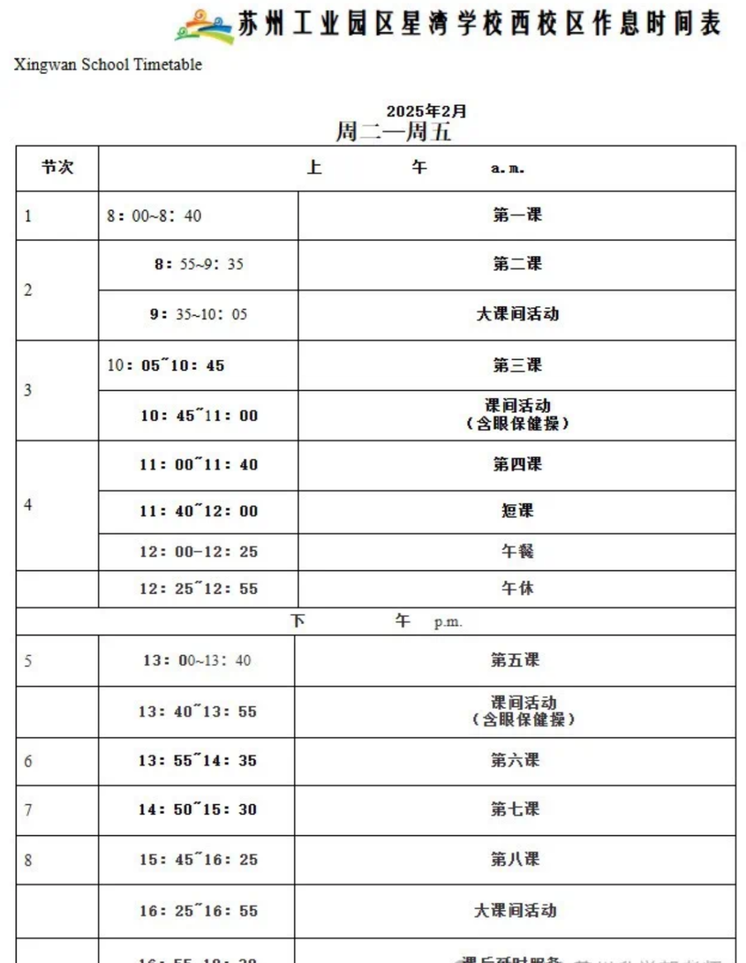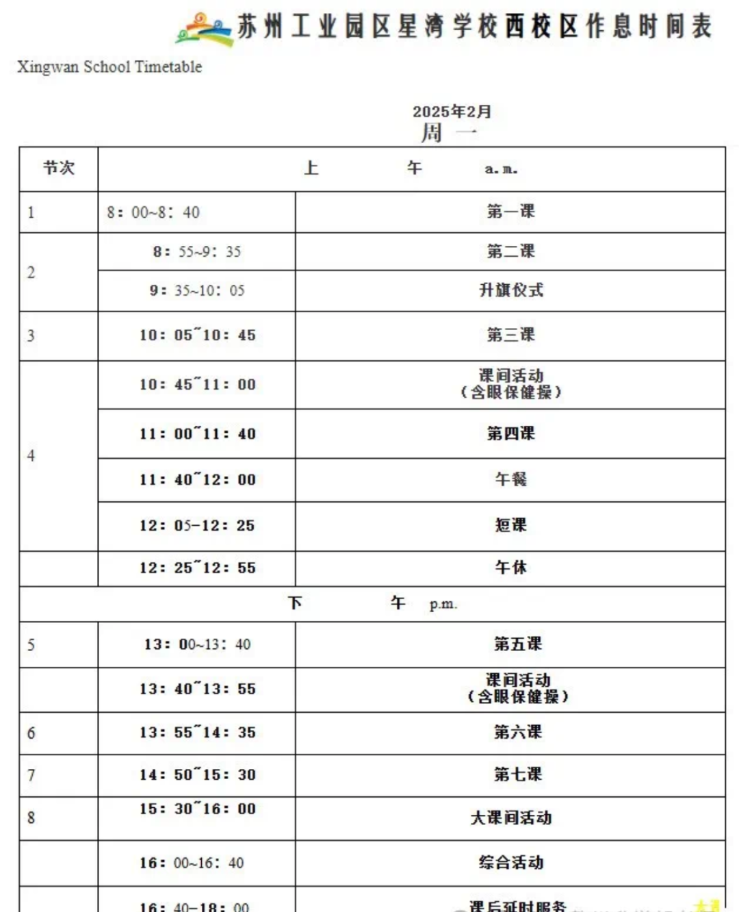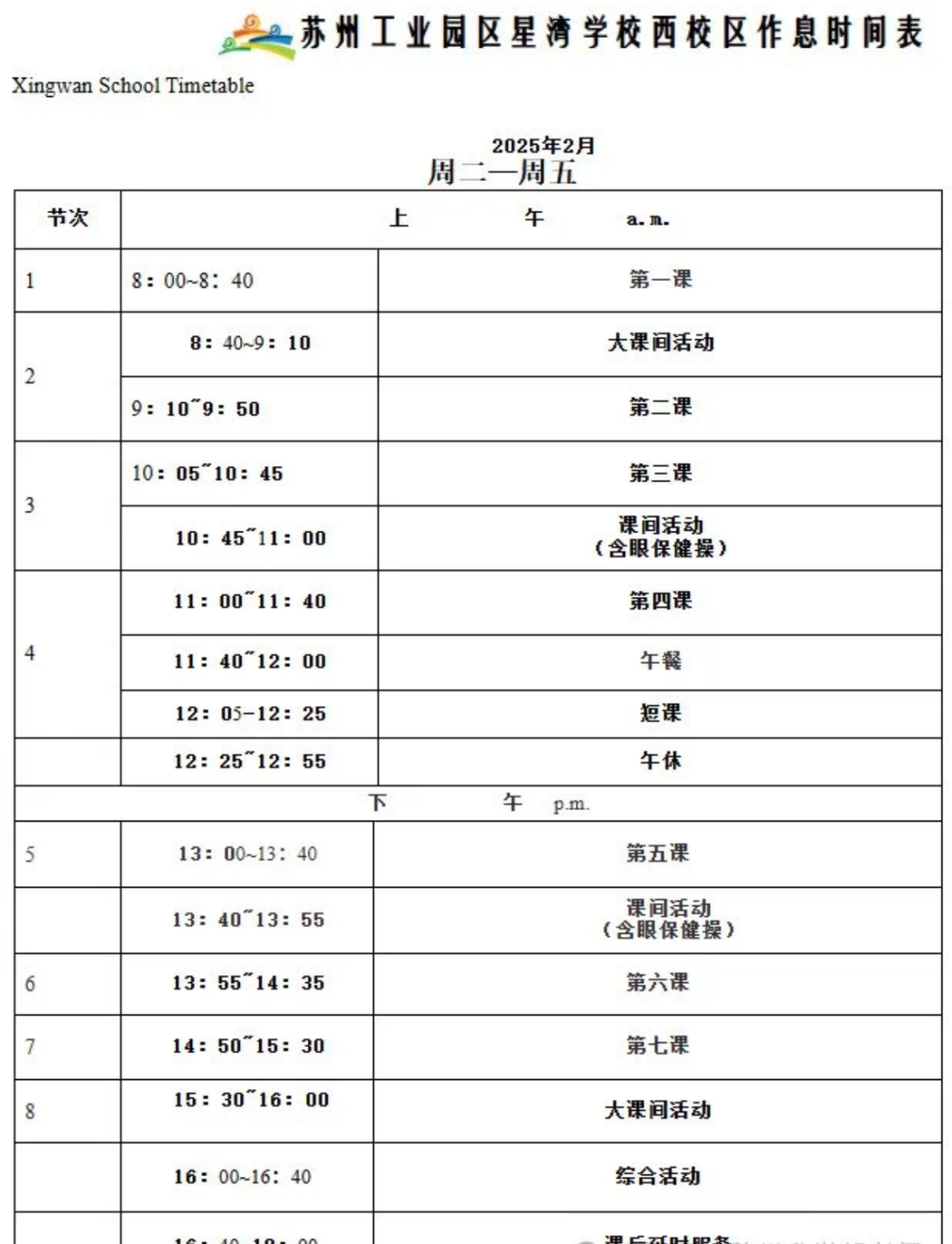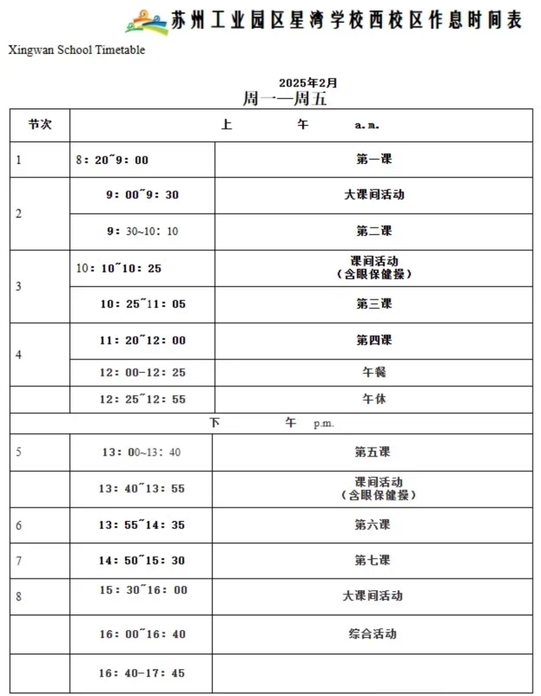 7.作息时间表&课程表