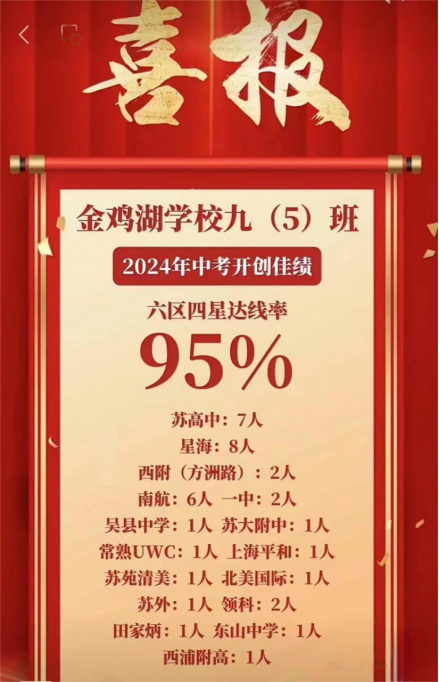 在苏州中考730分时代,金鸡湖学校曾以710分拿下全市最高分,更取得苏州中考均分全市第一的优异成绩。如今进入总分740分时代,学校再次突破,以727分创造苏州史上最高分,实力强劲,令人瞩目。