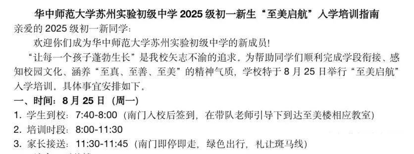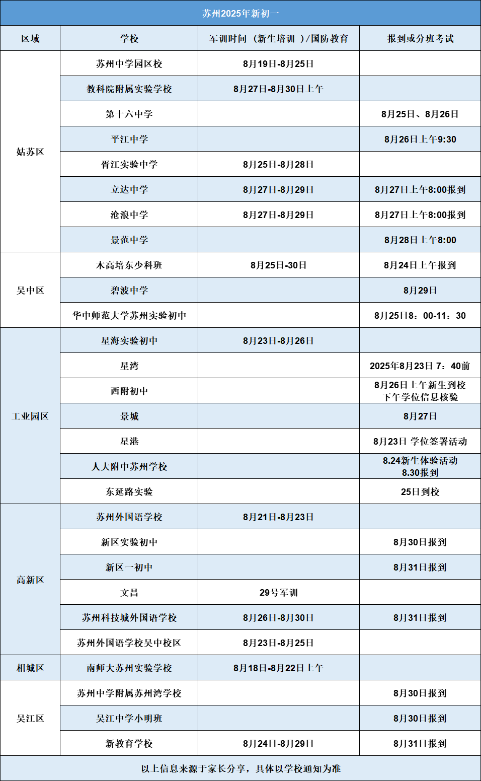 2025江苏苏州这些初中新初一分班、军训、分班考时间出炉