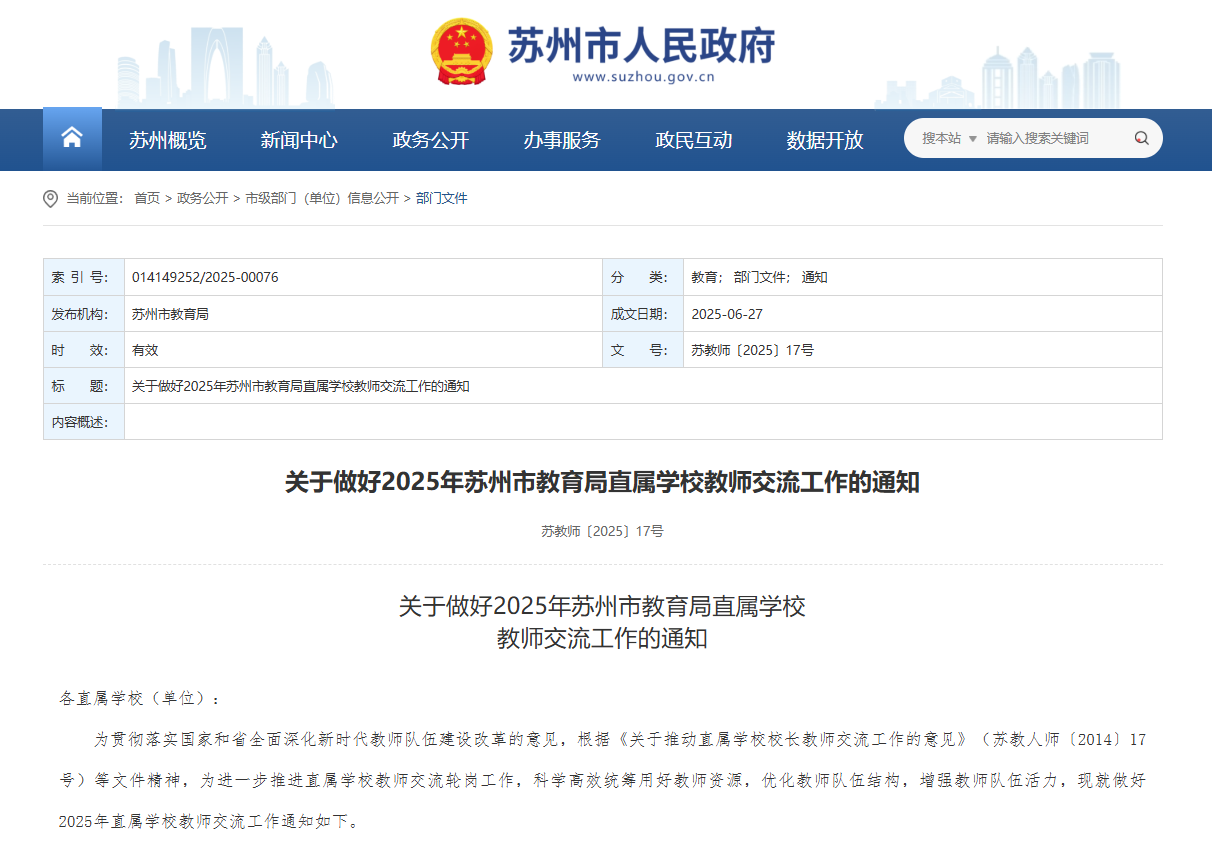 江苏省苏州市教育局最新通知,2025教师交流轮岗启动