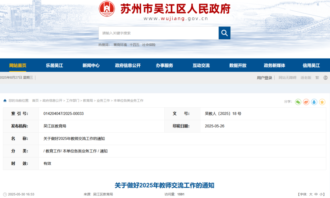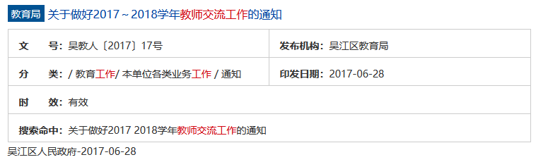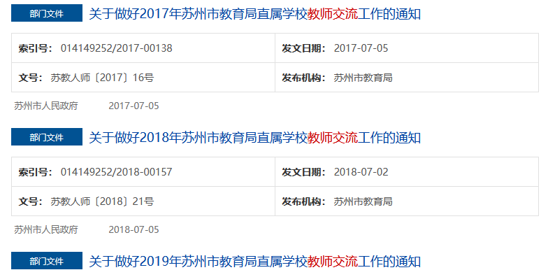 从官网搜索后可以看到,市教育局直属学校以及吴江区学校的教师交流工作均从17年就开始了