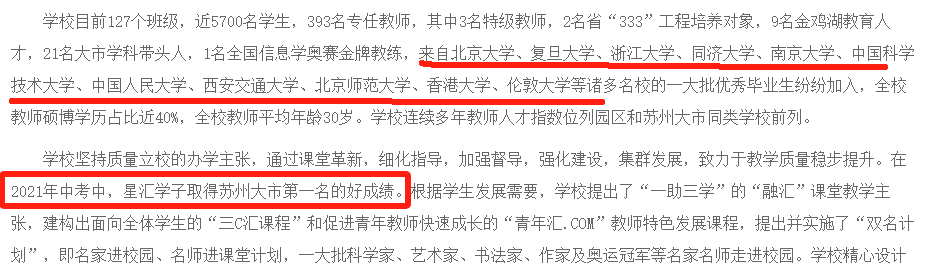 师资力量:星港中学是苏州市乃至全国教育现代化水平最高的学校之一。学校共有大市学科带头人、区学科带头人、教学能手、教坛新秀、教科研新秀等百余人。