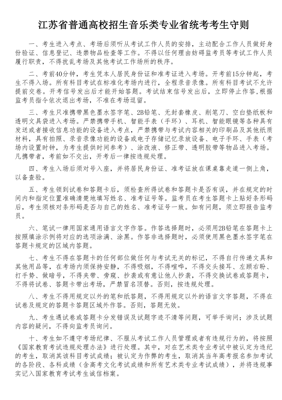 江苏省2026年普通高校招生音乐类、美术与设计类专业省统考笔试