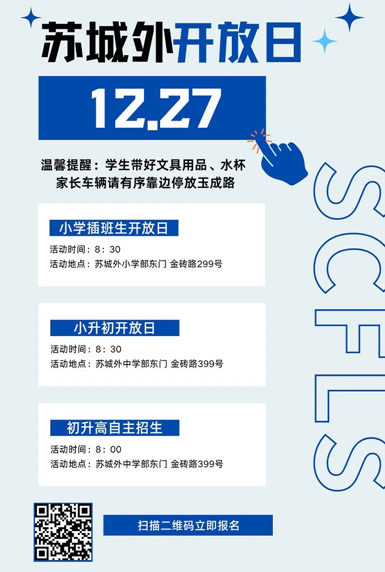 2025江苏苏州 苏城外12月27日开放日,小升初+普高,测评同步开启