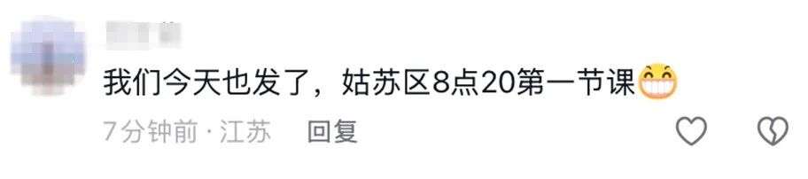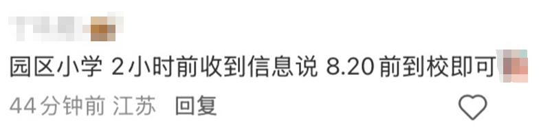 苏州其他区的家长也反馈已经收到学校延迟到校的通知——