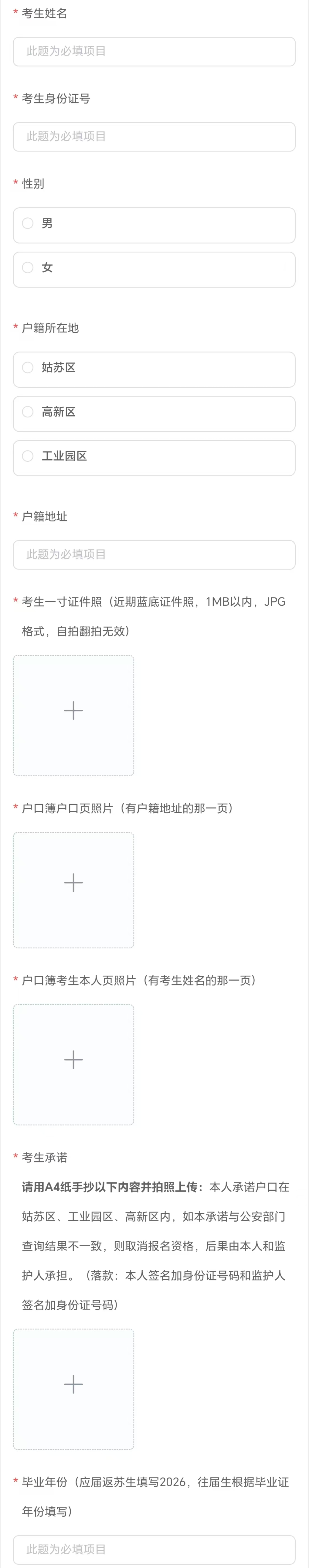 姑苏区、工业园区、高新区2026年中考往届生、应届返苏生中考报名资格审核提交材料