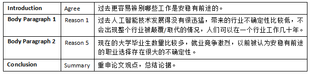 根据个人对于观点的熟悉程度和本身具有的语料储备,考生可以挑选出合适拓展的观点进行深入撰写。这里, 我们分别选取上述两个角度的其中一个原因进行内容编写,大纲如下:
