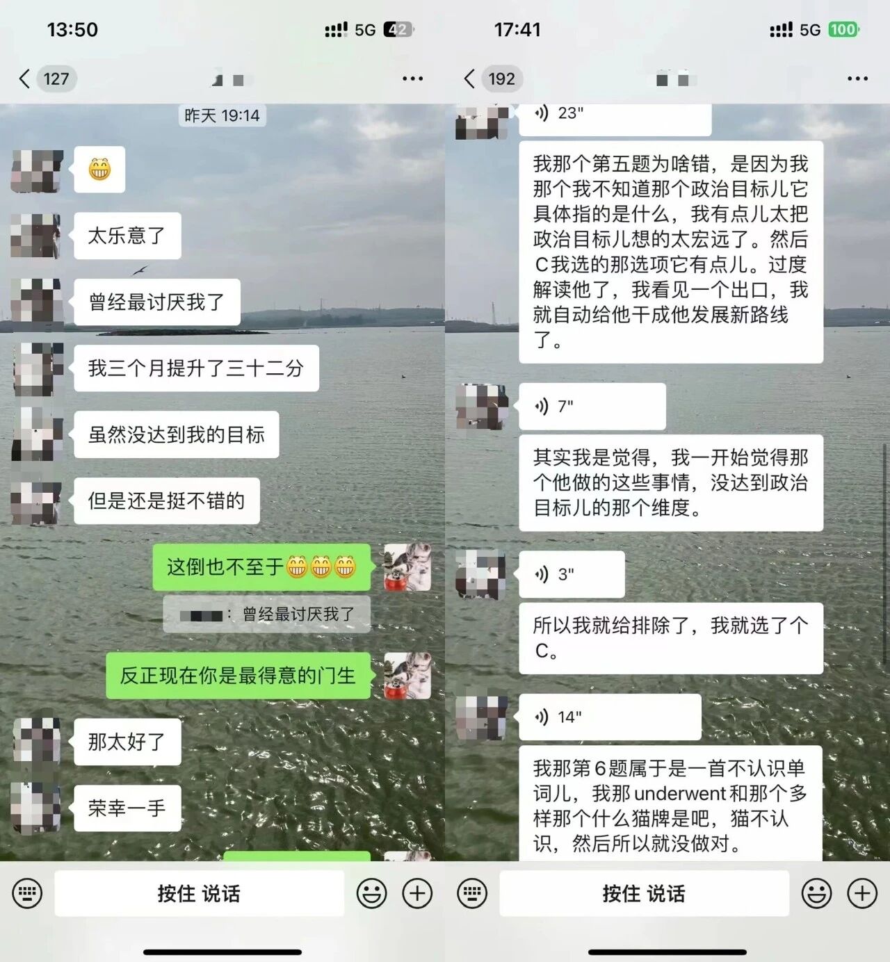 穷极思变,我发现了我也需要改变,需要去认识了解他。通过和他与他同学的对话,我逐渐拼凑起了一个不只是新东方学生,而且一个更加立体、生活的Alex同学。一个有点恋爱脑的、爱打篮球、在抖音上做篮球内容小有名气的、梦想去NYU的Alex同学。我开始关心那些纹身的内容,他说“这是我姥姥的生日,这是我妈的,这是我爸的”,我说我很感动。他说,老师,我开始用你的方法了,发现句子简化题和句子插入题很有信心了。