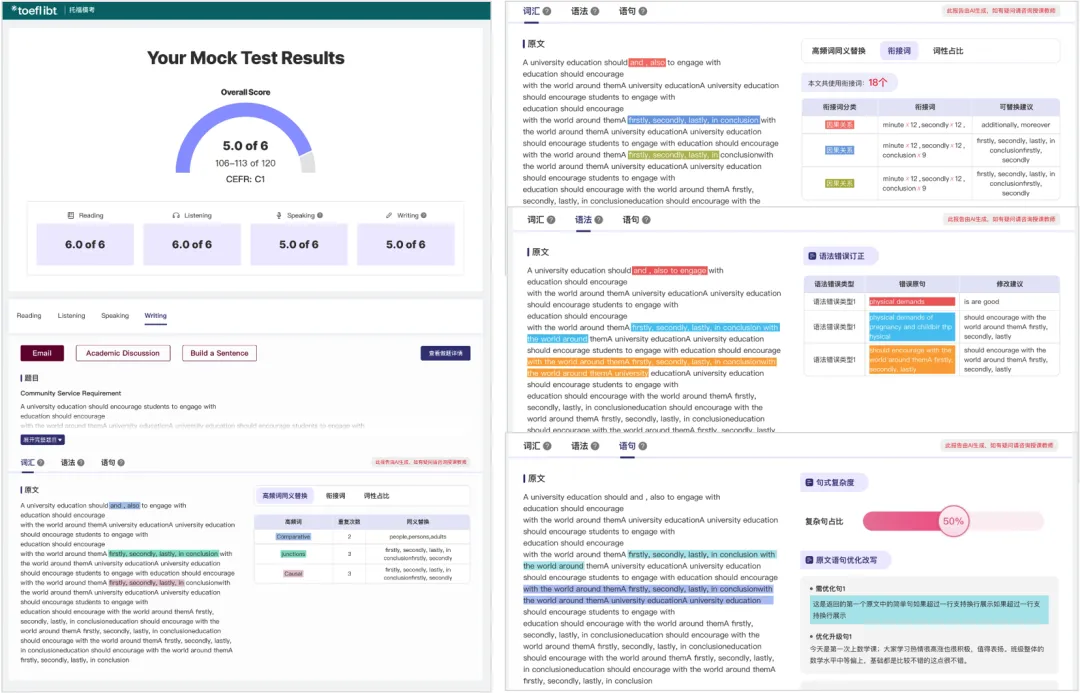 ✅AI评分报告:四万余学员考情沉淀AI算法评分,口语写作详细个性化反馈报告