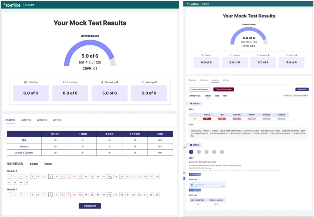 ✅真自适应:新托福同款分阶段自适应模考,帮助学生节奏+心态双适应