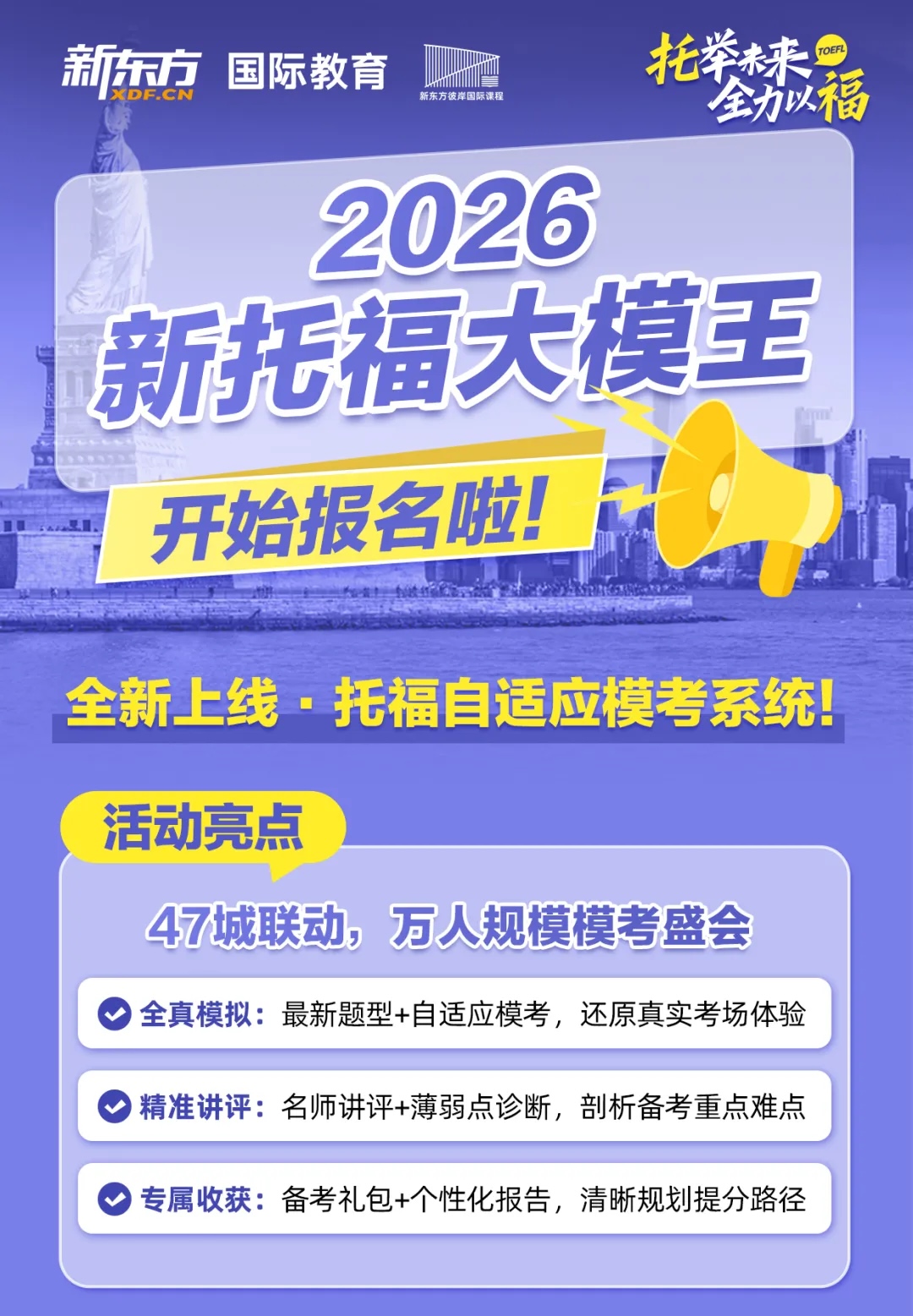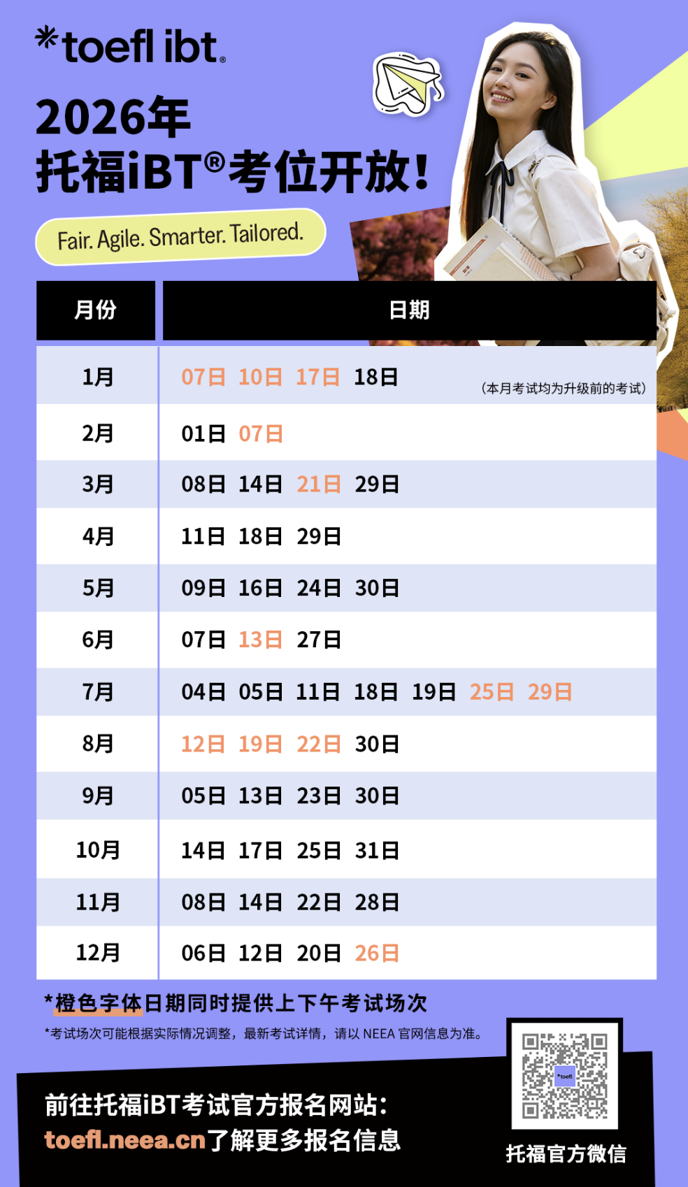自2026年1月21日起,托福iBT考试将迎来全新升级,进一步优化考试结构,全面提升考生体验。