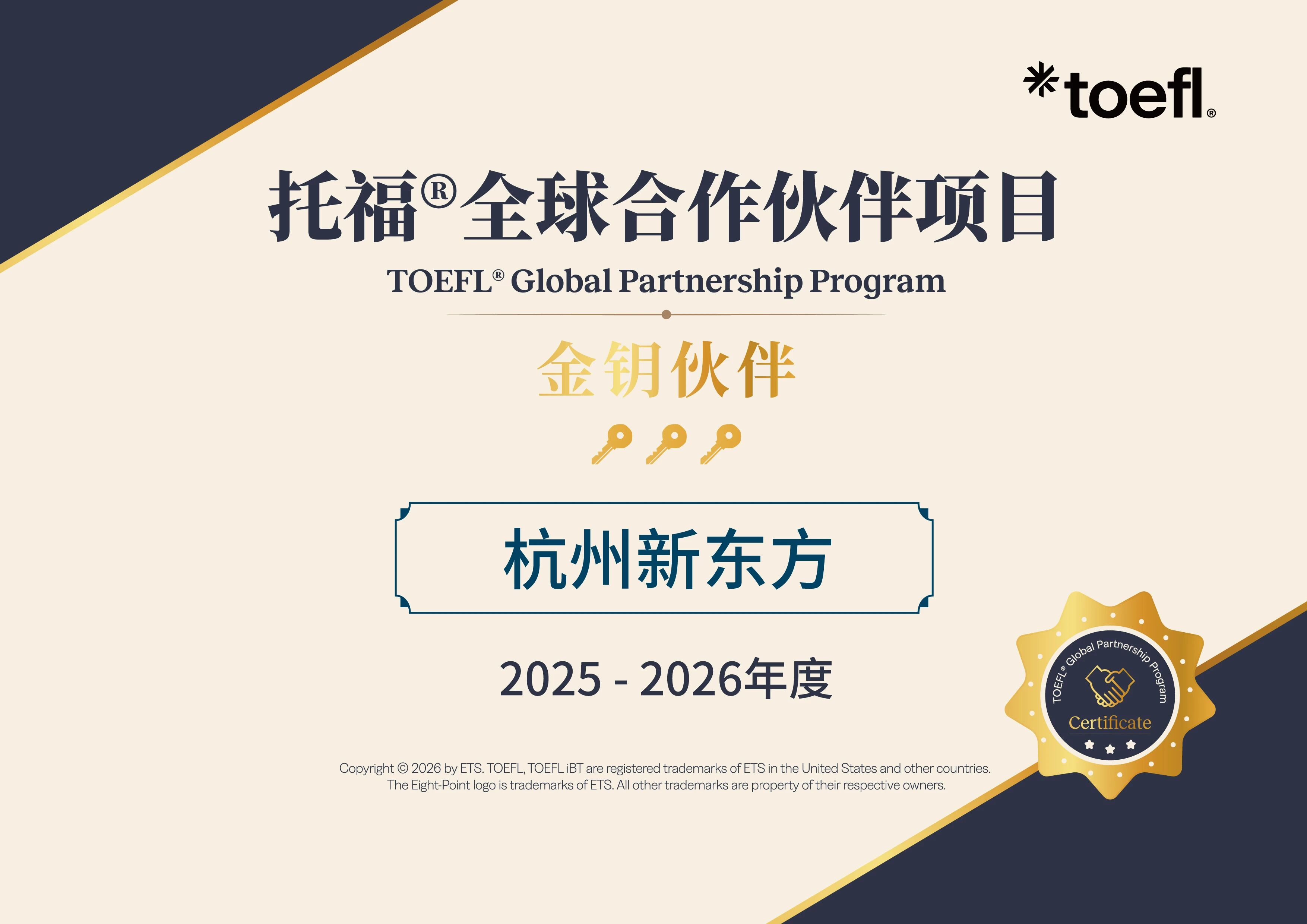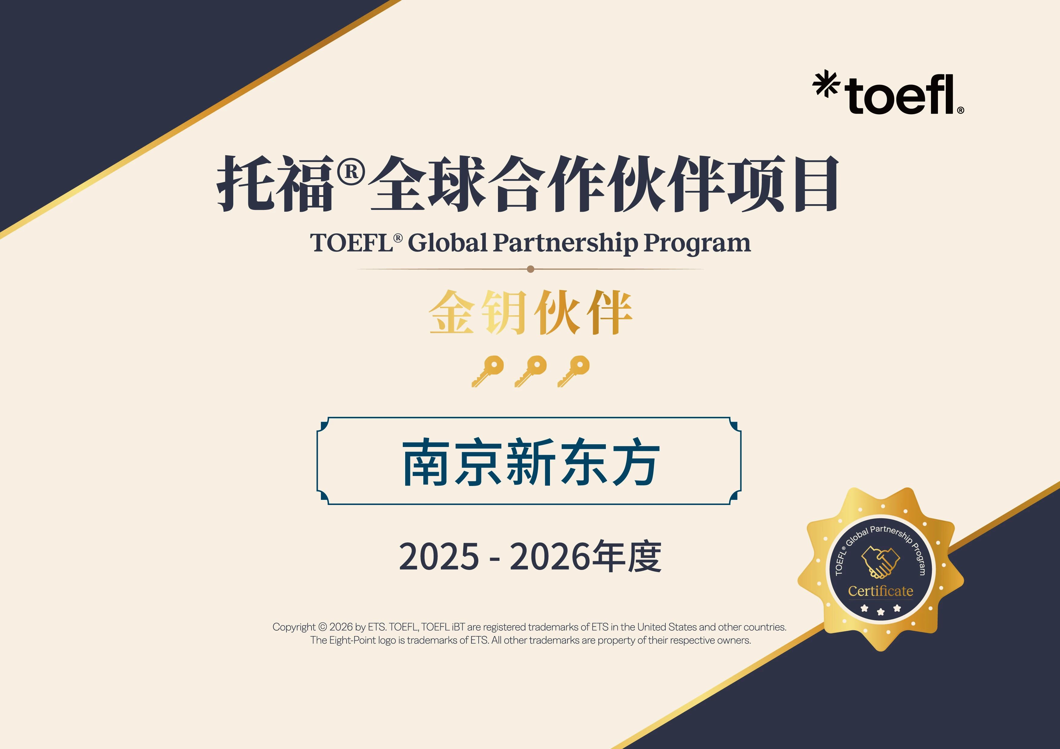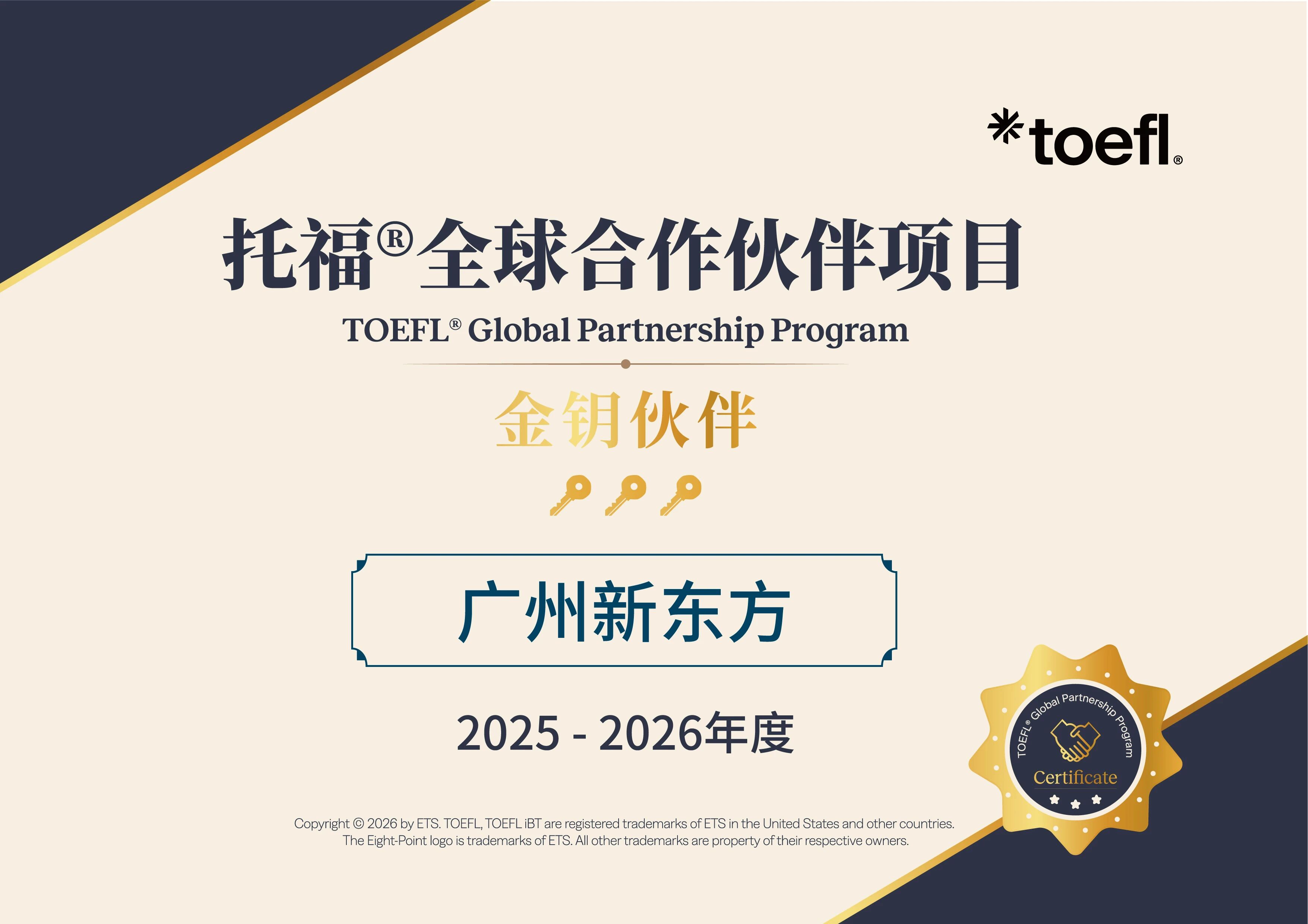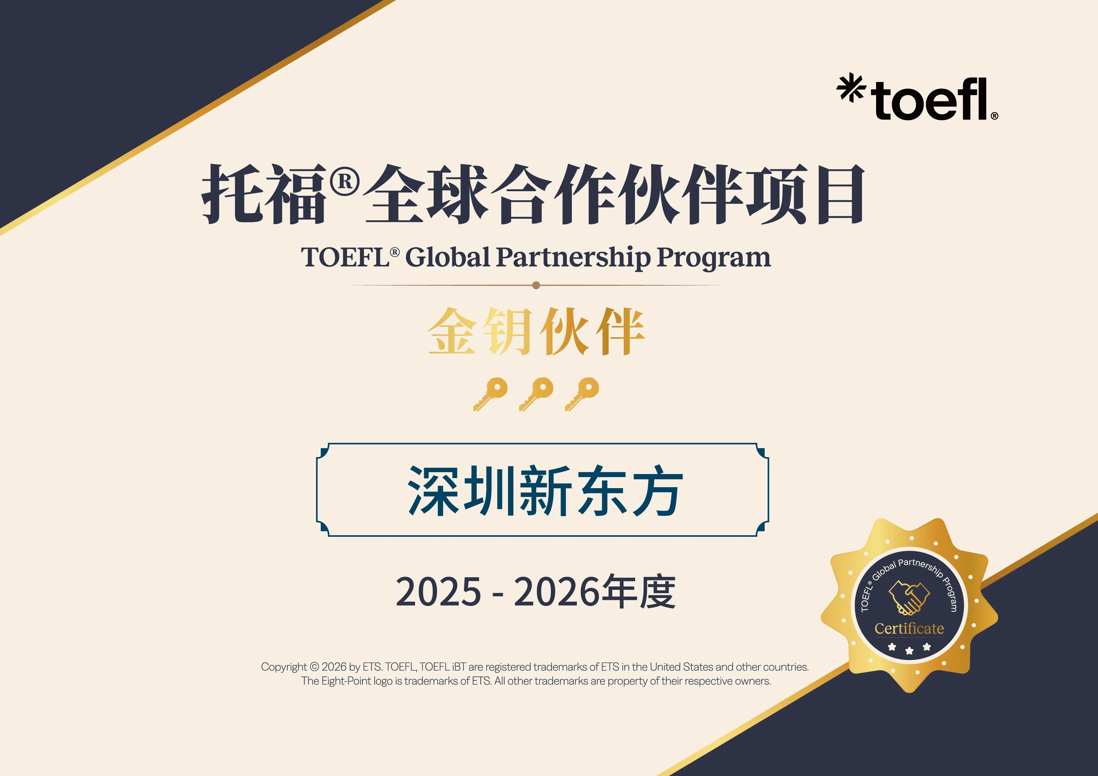 深圳新东方、南京新东方、杭州新东方、广州新东方获得托福全球合作伙伴项目“金钥伙伴”的称号。