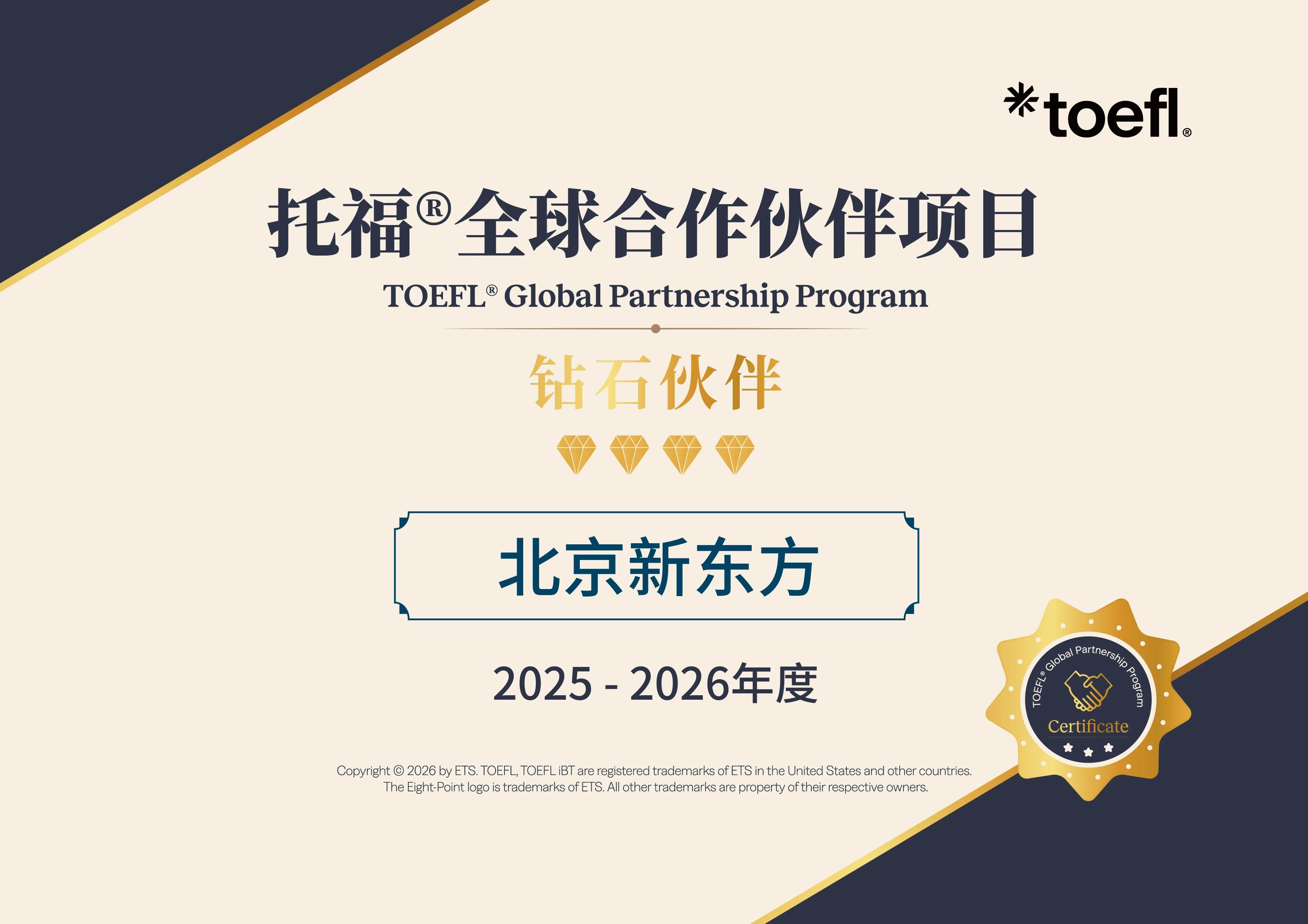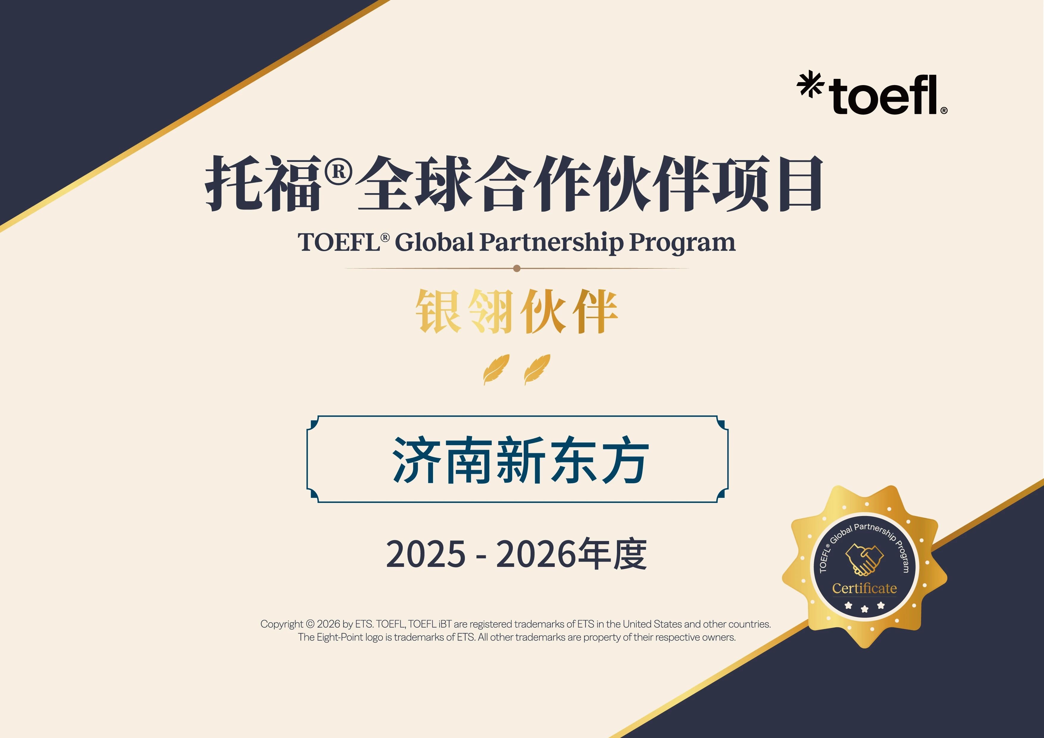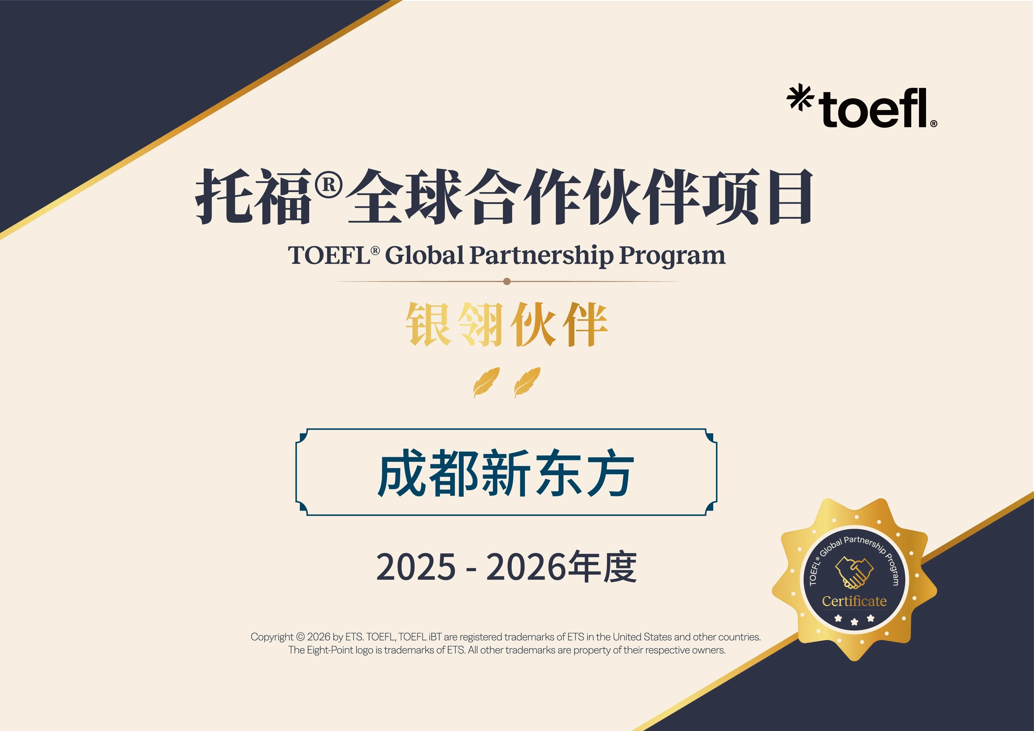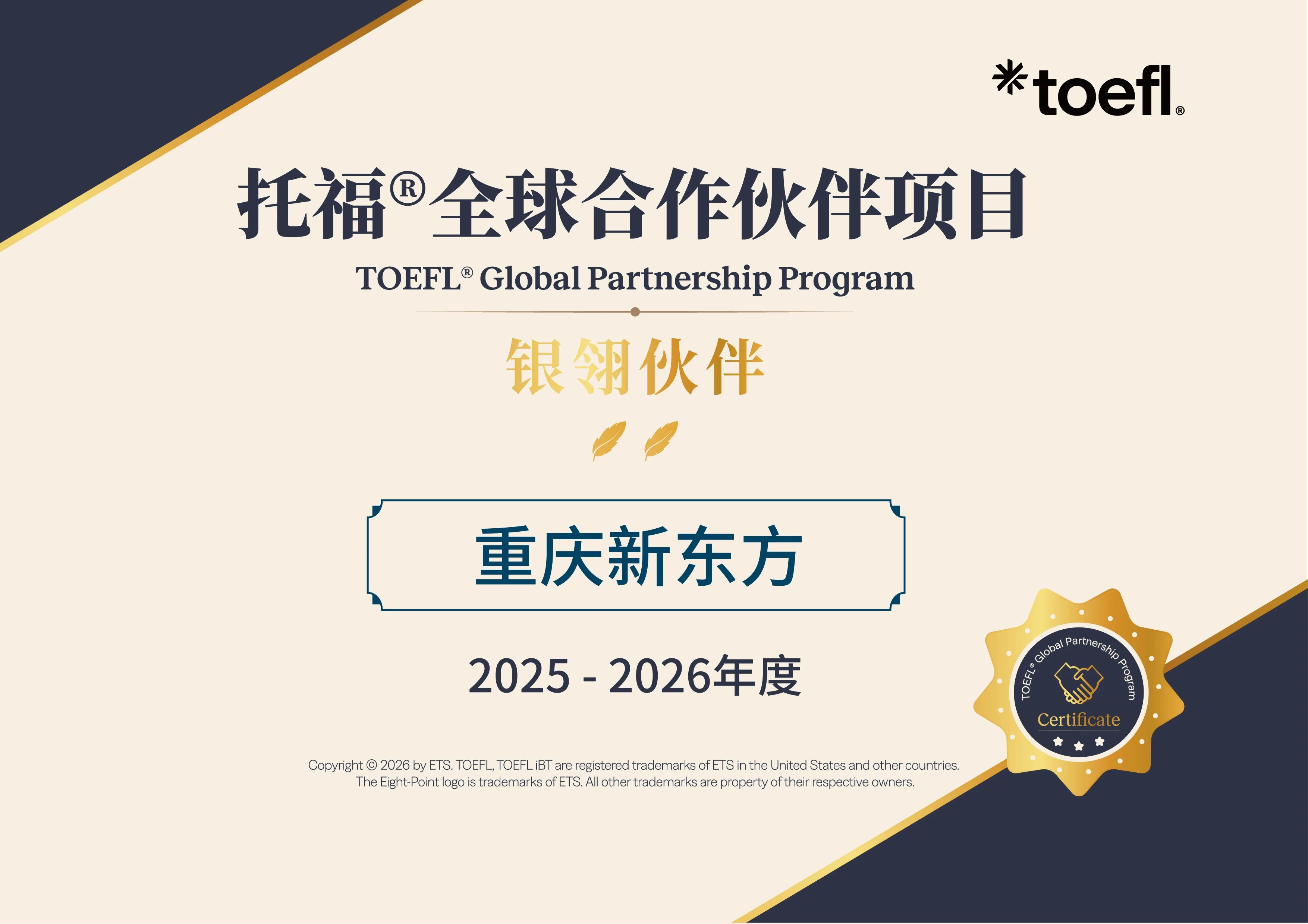 重庆新东方、济南新东方、成都新东方获得托福全球合作伙伴项目“银翎伙伴”的称号。