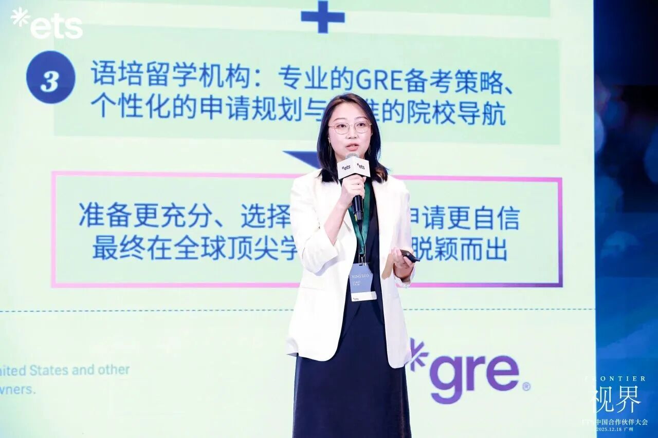 ETS中国GRE学术关系经理骆宁指出,随着高校毕业生规模扩大、就业竞争加剧,出国读研成为提升竞争力的重要路径,而GRE考生人数也已回升并超越2019年水平。作为全球超2万所院校认可的测评工具,GRE侧重考察学术潜力而非单纯英语水平,是海外读研申请与高精尖行业求职的加分项。ETS同步推出合作伙伴项目,为教培、留学机构提供多维度支持。