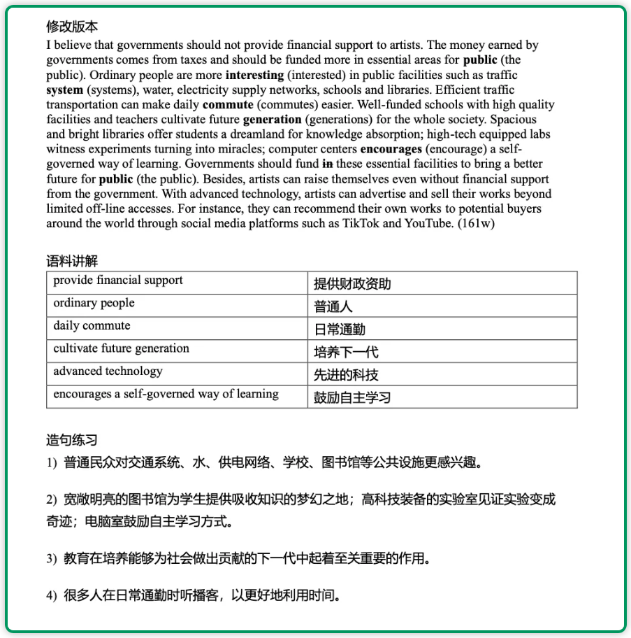 4. 地道表达校准:复盘作文中不地道的表达,结合高分范文优化语言,规避隐性失分点。