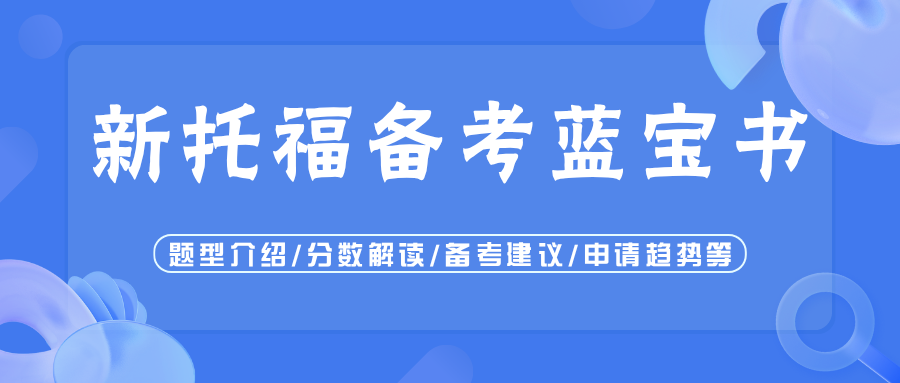 为了帮助大家更好地备考托福考试,新东方老师为大家准备了新托福备考蓝宝书,包括托福题型介绍、分数解读、备考建议以及申请趋势等资料,直接分享给大家,点击图片即可直接领取。