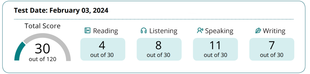 2024年2月3日,首次托福正考前,L同学在对我放下豪言壮语:“刘老师,我要做你第一个托福首考满分的学生”。我知道,他在给自己打气,缓解考前紧张的情绪,因为根据入班后首次模拟测试minitest,总分42分(阅读4、听力14、口语13、写作11),以及平时阶段性模拟测试和表现,首考超过50+也是非常困难的一件事。