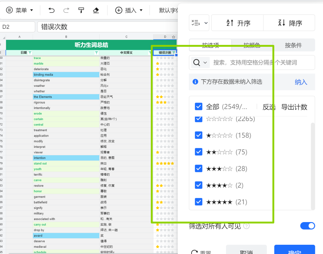 从2023年托福课程开始,听力李怡老师就将课上讲解过程中遇到的所有生词,逐一汇总进入生词本。日积月累,统计下来共2549个。