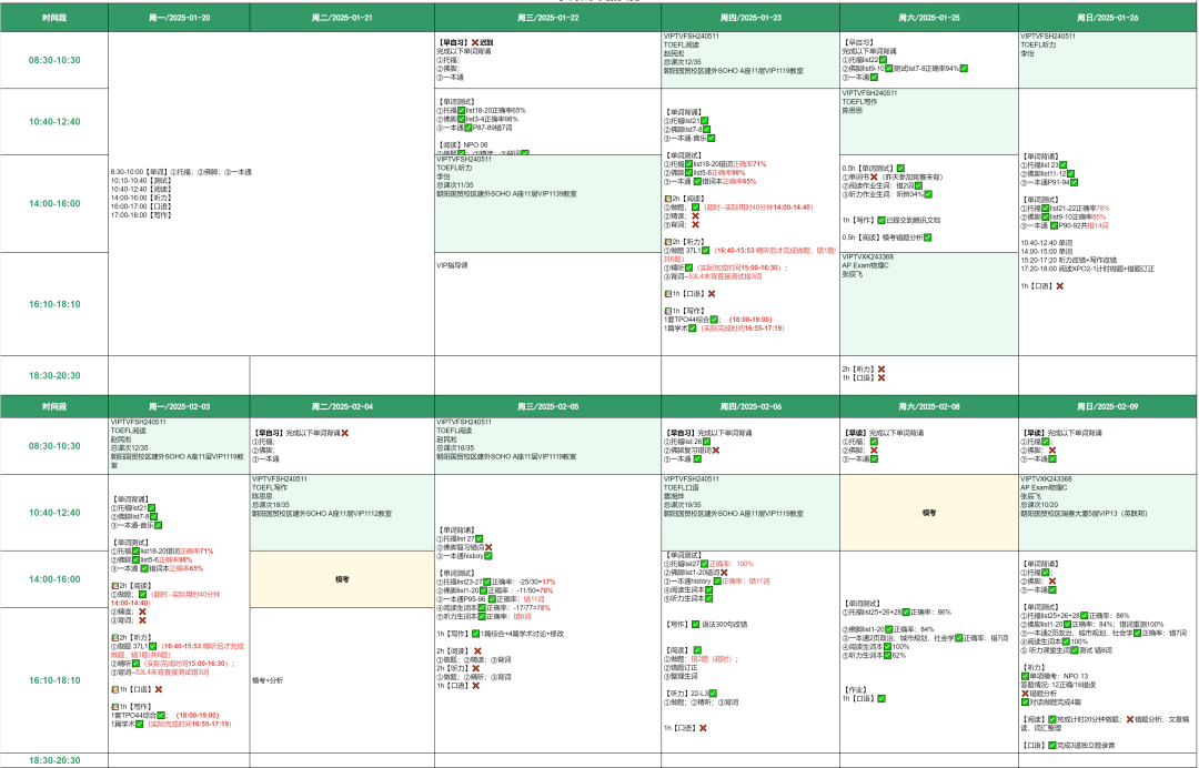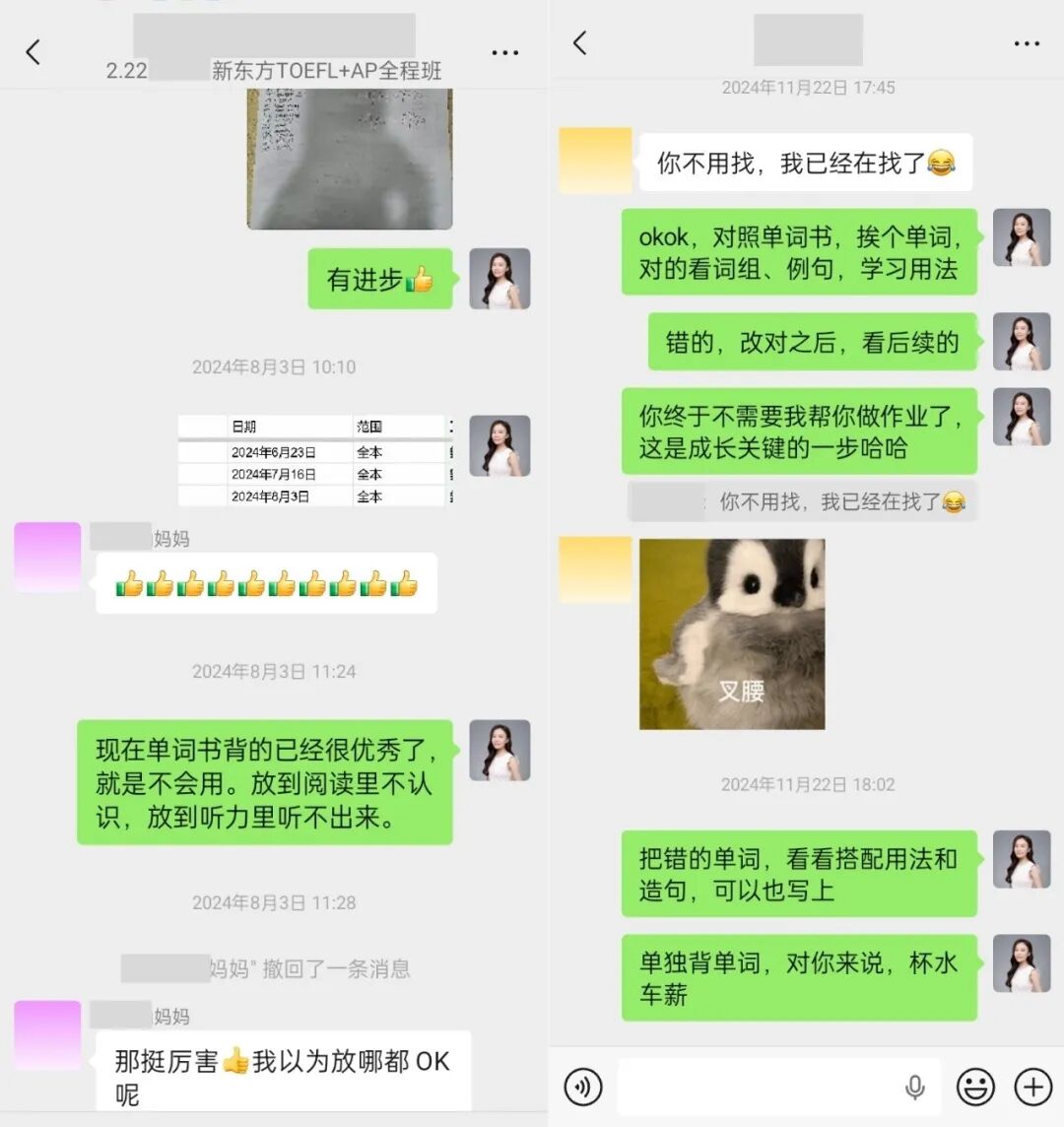 经过多次反复沟通,我们逐步延长了他的指导课时间,增加了周中背单词的频次。