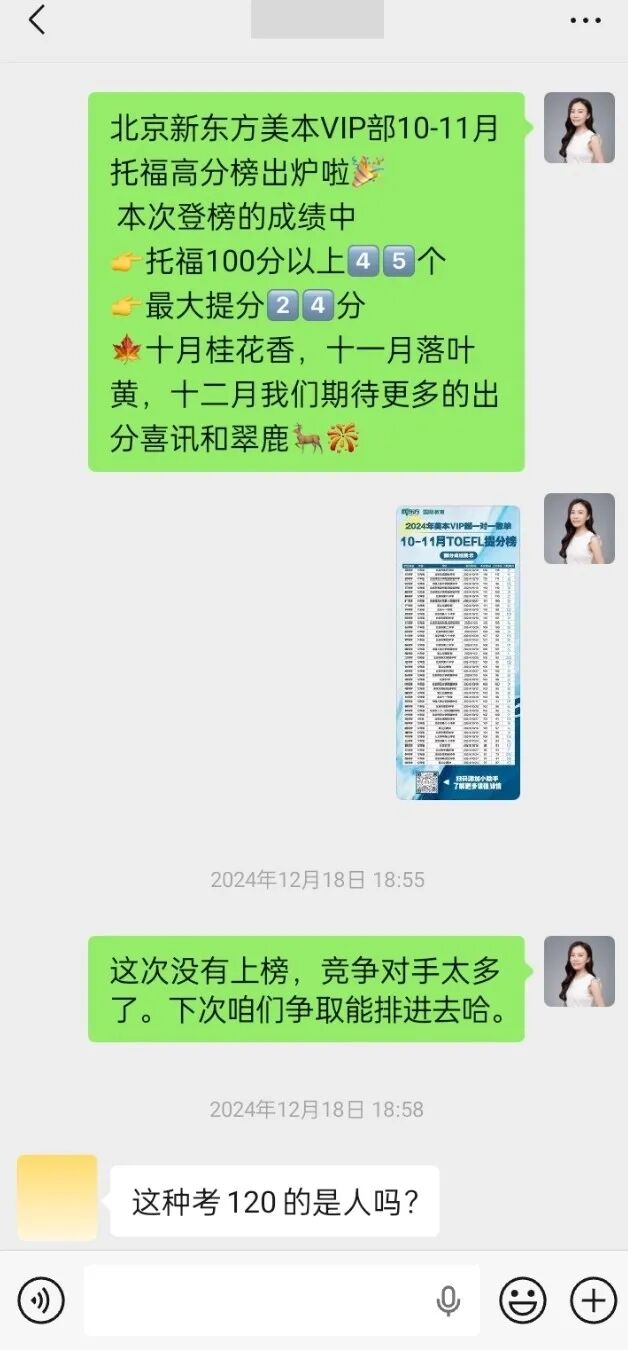 从个位数到二十几分、阶段性分数的达成,都要即时给与学生十足的肯定,因为多年跟托福打交道的我们学习顾问,无论是自己备考还是工作中跟盯学员备考,深知托福考试的难度和强度,我们也更理解基础薄弱、但是短时间需要快速提升的学员,每一次涨分的难度有多大,考前需要付出多少时间努力和汗水甚至泪水。