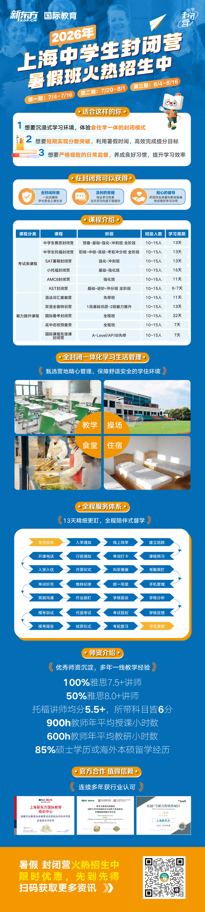 ‼️中学生暑假封闭营火热招生中,全封闭式教学、顶配师资、沉浸式提升,这个夏天一起见证学生成长!需要报名的家长扫码即可咨询详情