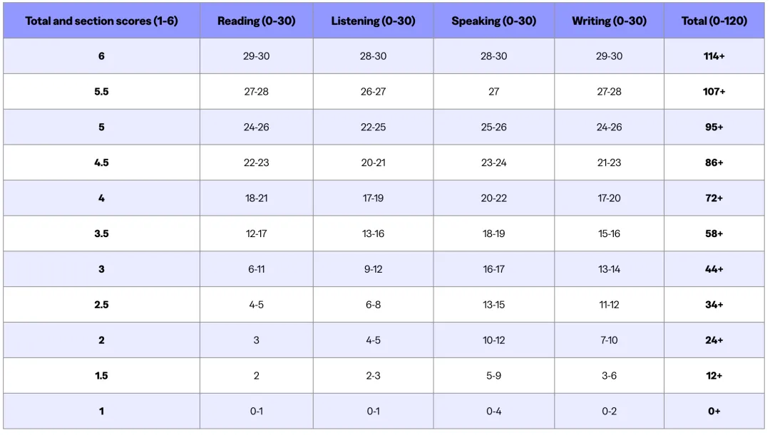 新托福采用6分制评分,标准更宽泛、容错率更高:总分按四舍五入计算(如5.25分可直接进位为5.5分),即使分数卡在临界值,也能轻松达标,对中分段考生格外友好。
