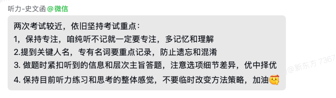 再次便是增加针对性的练习和模拟,以及学科单词的背诵和测试,而且强化精读、精听的重要性和细化步骤,做到完成一篇就有一篇的效果,能够举一反三,让学生能够自己沉淀出一套自己的做题方法。