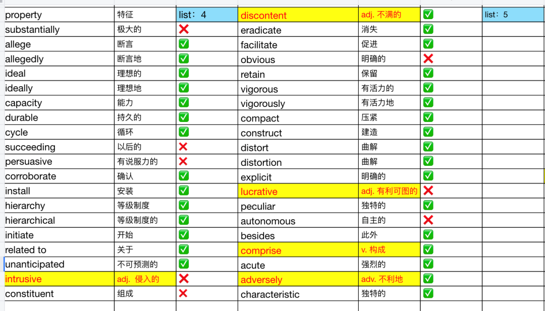 首先,D同学对于阅读的词汇题总是选不对,我们着重“佛脚词”这本书来进行滚动复习,每次指导课复习测试当周的背诵内容,以及前一周的错词,并且会进行阶段性的3/5/8个单元的抽测练习,同时给学生整理了个性化的错词本,整理出对应的单词有效复习,养成高效学习习惯;