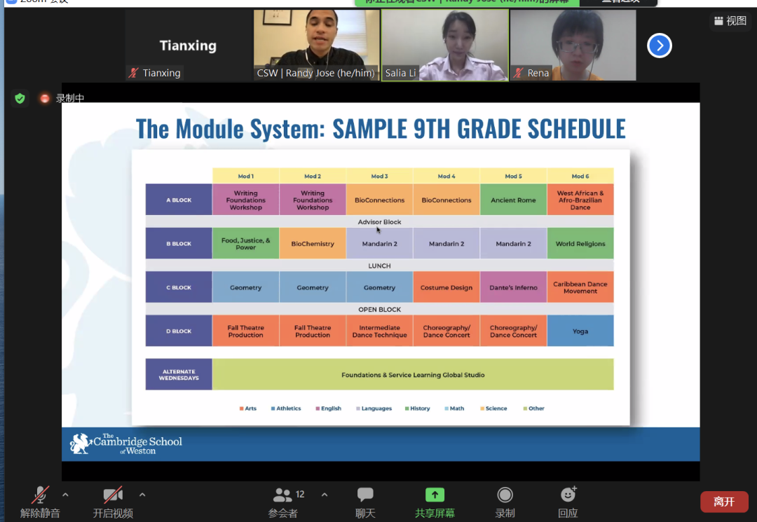 Harkness Table:采用以学生开放性交流及讨论为主体,老师从旁引导为辅助的教学方法。这种方法更有利于学生自主思考、提出观点,以此锻炼自己的独立思考和批判性思维能力。