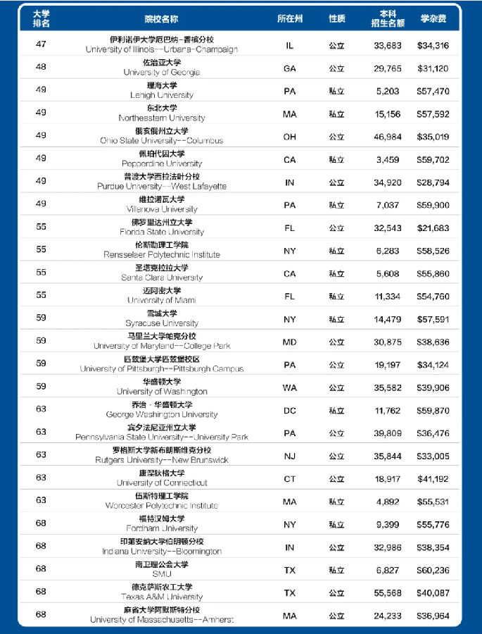 U.S. News 2022年度美国最佳大学排名TOP47-68
