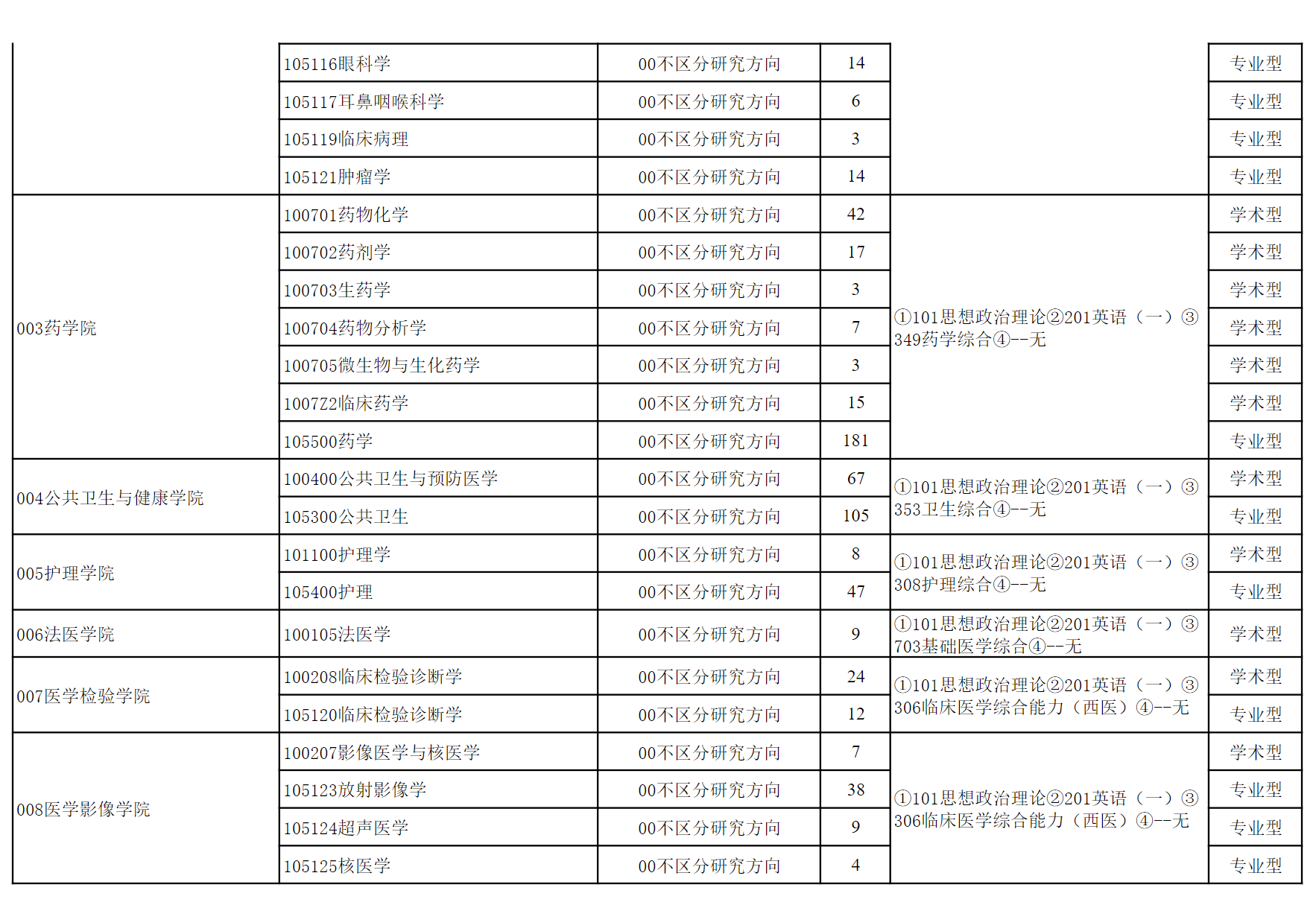 贵州医科大学2026年硕士研究生招生专业目录明细