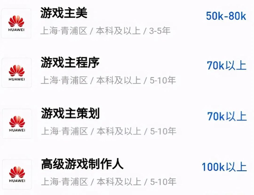 另外,华为此前已经开始大肆“招兵买马”,高薪招聘游戏人才,月薪从5万+到10万+不等, 涵盖了游戏制作人、游戏主策划、游戏主程序、游戏主美等职位。