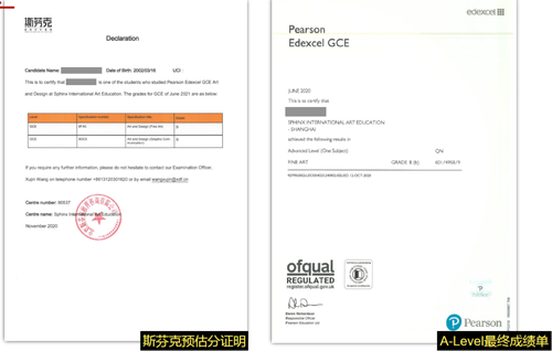 汪同学之所以能快速拿下offer,是因为斯芬克早已获得英国培生爱德思考试局的官方认可,成为了A-Level艺术课程的办学中心和考点,且是内审权威机构。