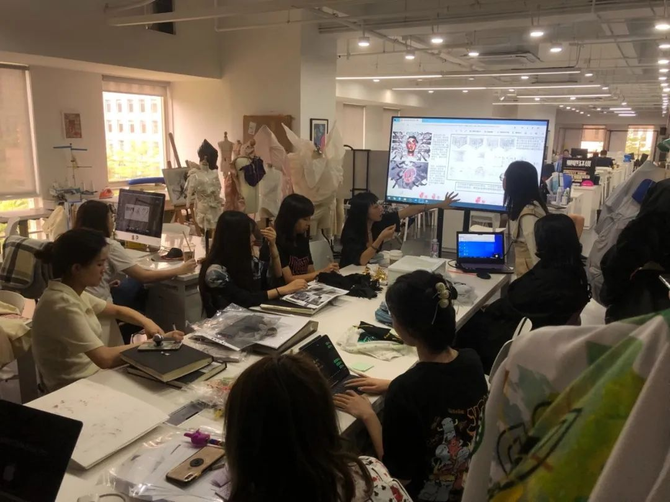 相比于如雷贯耳的皇艺、伦艺、帕森斯,马兰戈尼给Yin老师的第一印象就是小、好小,可麻雀虽小但五脏俱全,教学实力却不输。他们的教室全部都是开放式的,不管是设计课还是打板课还有电脑课,基本上都是1v1的,老师会针对每一个学生的想法去沟通,给出非常一针见血的意见,又扎心,又佩服。