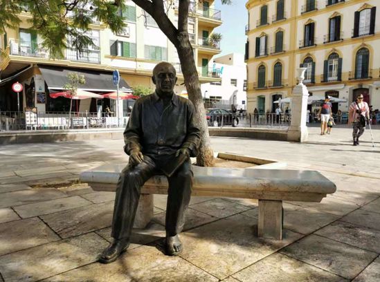 到了马拉加,先到毕加索小时候生长的广场和房子去看了看。广场上有毕加索坐在那里的铜像,我坐在他边上照了一张相,想象着他小时候在广场上玩耍的样子。人总有童年的时候,总有在童年留下的美好记忆,但毕加索自从10岁离开了家乡之后,一生就再也没有回过家乡。没有人知道在他心里,家乡被安放在了什么地方。