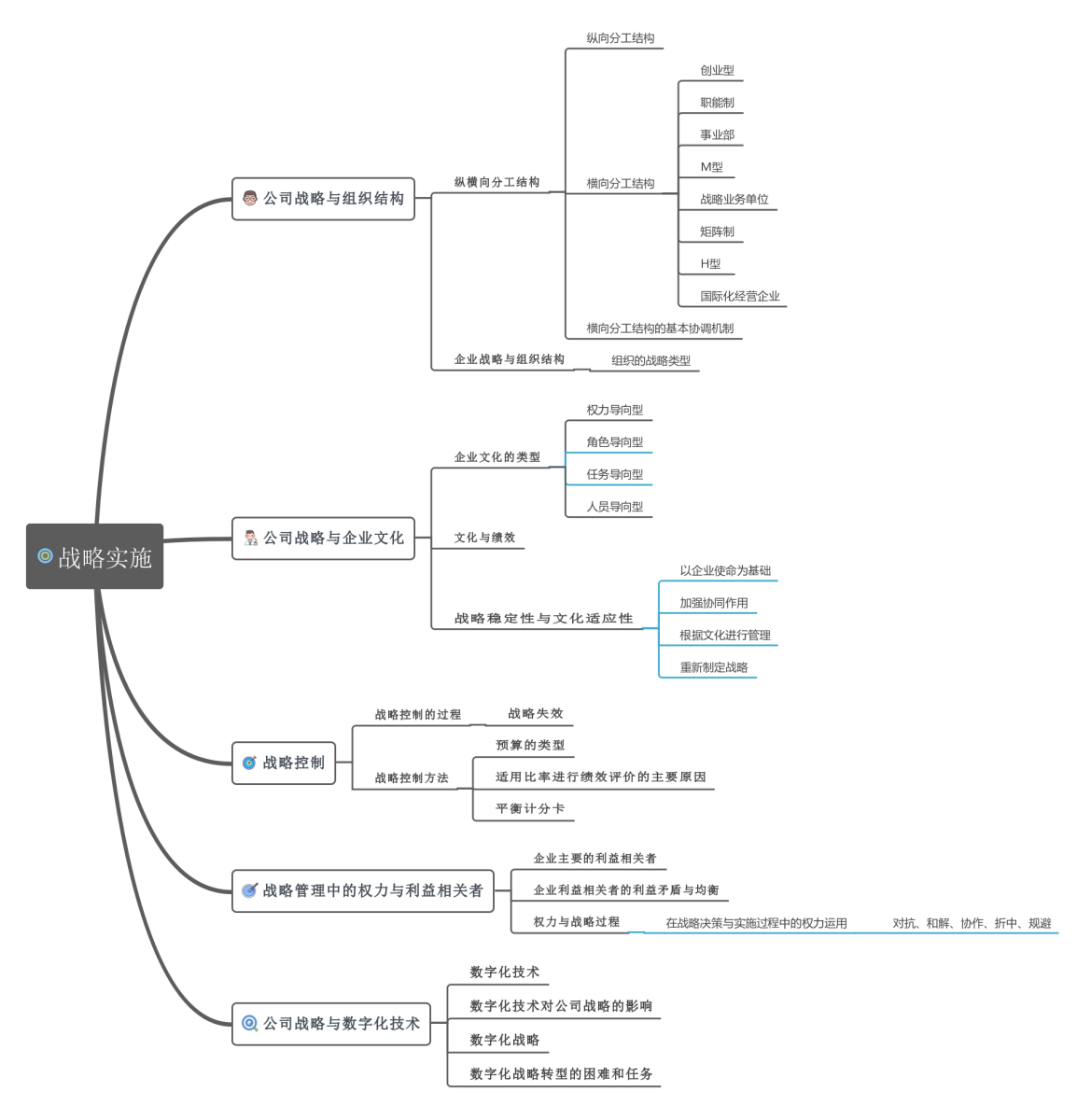 第四章“战略实施”讲解了企业组织结构、文化建设、控制协调、利益相关者矛盾均衡、信息技术等对战略实施的影响。
