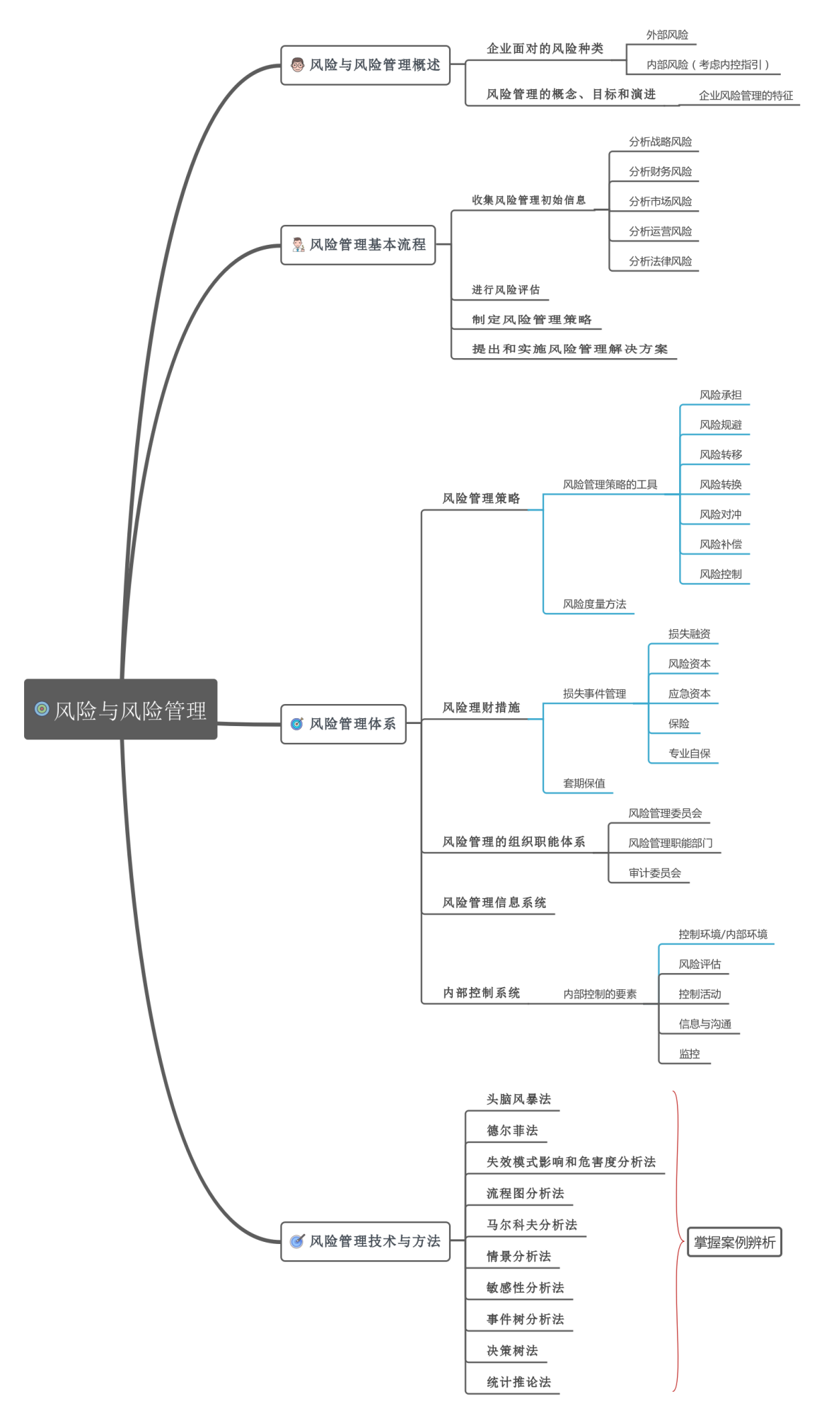第六章基于《中央企业全面风险管理指引》文件,讲解了全面风险管理的理论和实务知识。全面风险管理是内部控制发展的更高阶段,内部控制也是风险管理的一部分。