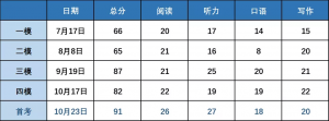 1. 虽然开班模考的成绩很不错,总分达到了66 ,但经过了三周的持续学习和练习,8月8日的二模总分反而下降了1分,听力和口语分数都有所下降。这也是小雨在备考过程中心态最脆弱的时刻,她开始怀疑自己之前的学习方式是不是有问题,暑假里宝贵的三周时间是不是浪费了;
