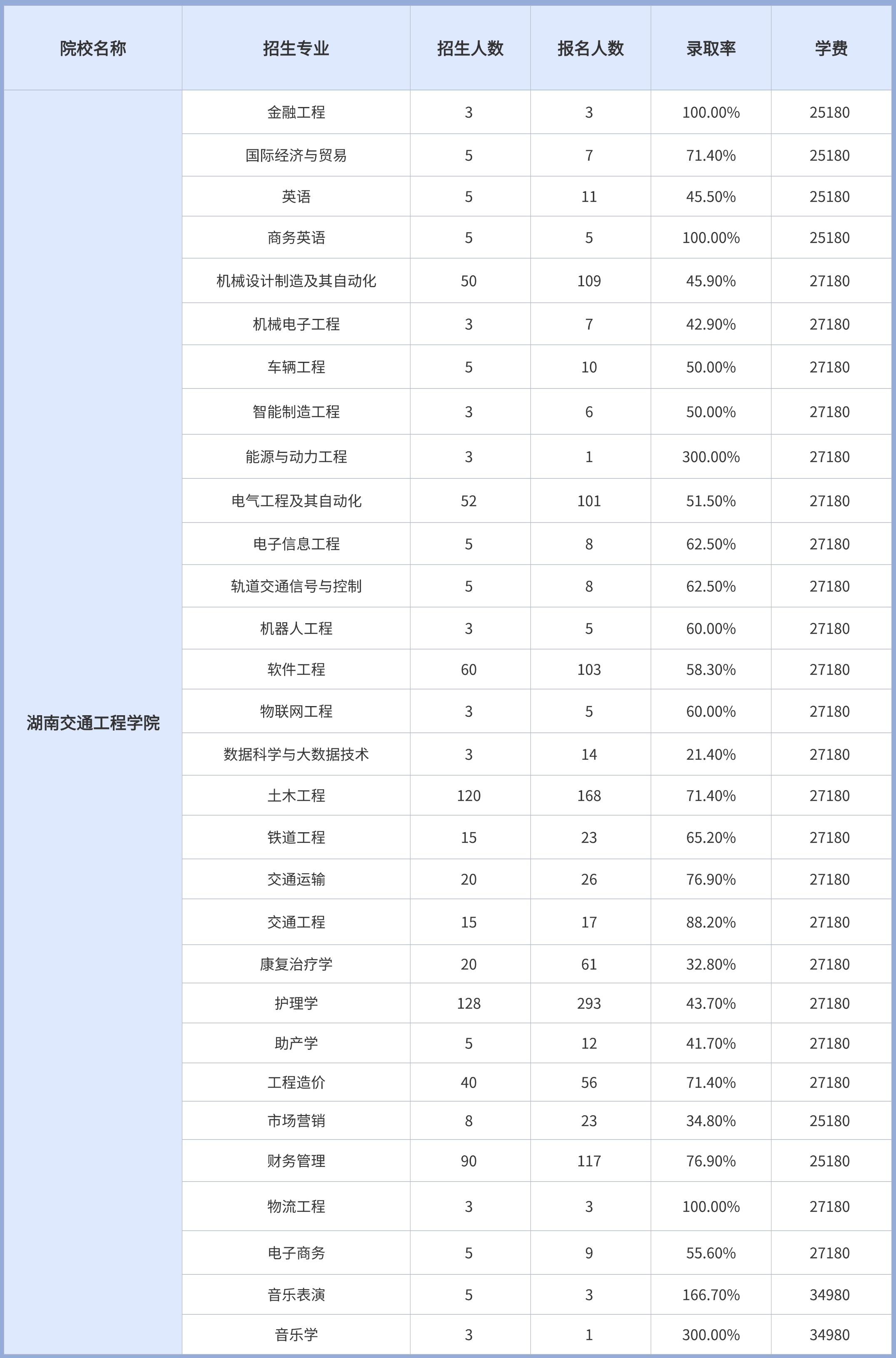 湖南交通工程学院2025年专升本各专业录取控制分数线如下: