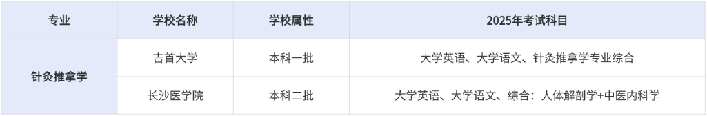 2025年针灸推拿学专业有以下院校招生,供26届考生参考与规划:
