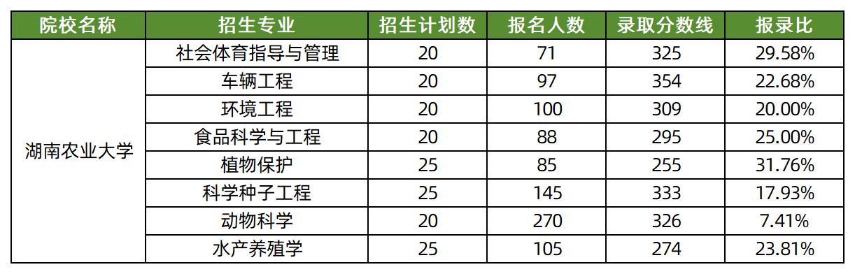 2025年湖南农业大学专升本共8个专业,招生计划数共175人,各专业具体报录比汇总如下: