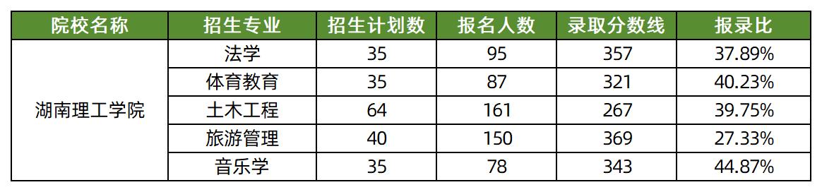 2025年湖南理工学院专升本共5个专业,招生计划数共209人,各专业具体报录比汇总如下: