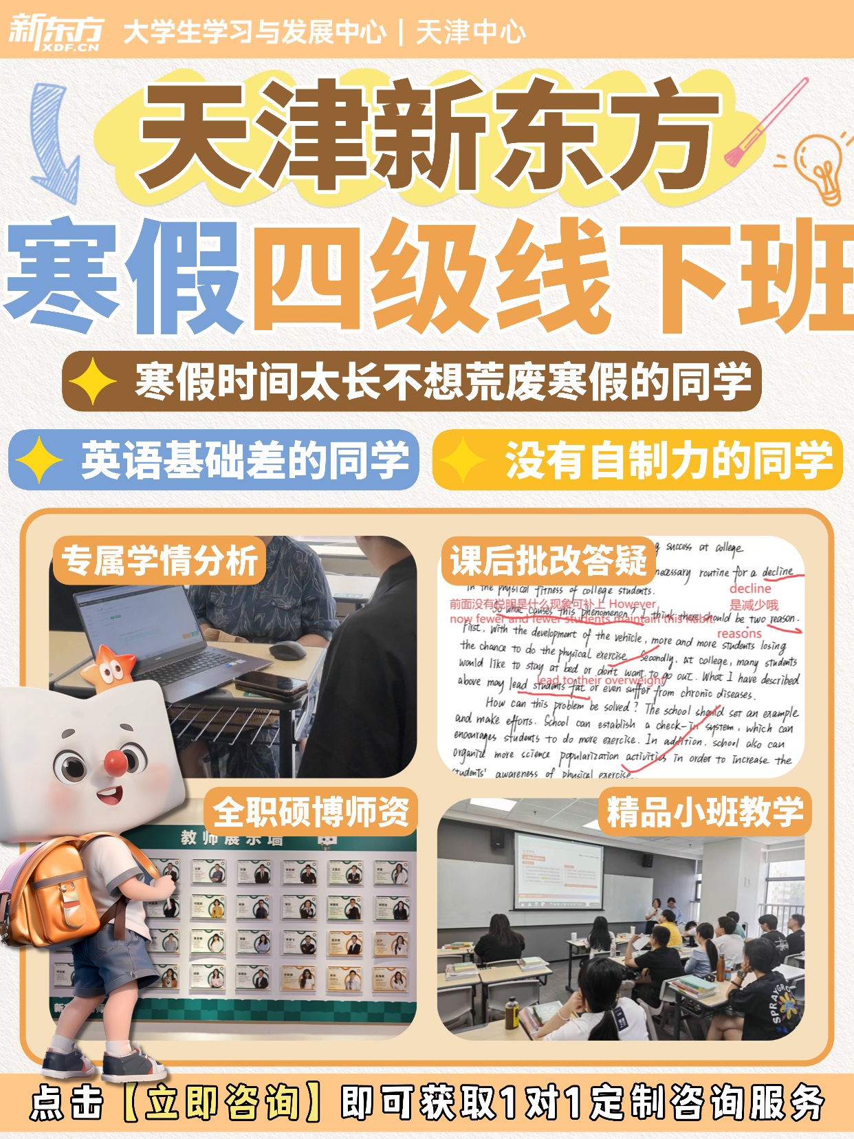 欢迎点击右下方咨询窗口或打开新东方四六级官网,了解课程详情及报名信息。让我们为你量身定制专属逆袭方案!